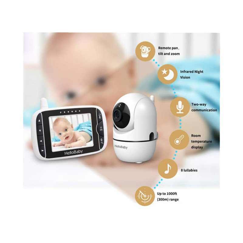 HelloBaby یک نام تجاری جوان تحت شرکت VideoTimes.co، Ltd است که در آوریل 2006 تاسیس شد و یک تولید کننده گواهی ISO-9001 محصولاتی است که در بیش از 30 کشور از جمله اروپا، آمریکای شمالی، آمریکای جنوبی، استرالیا، آسیا، آفریقا و غیره محبوب هستند. مانیتور کودک مجهز به نمایشگر رنگی 3.2 اینچی با وضوح بالا با فناوری بیسیم 2.4 گیگاهرتز است، دوربین کودک میتواند از راه دور تا 355 حرکت کند، شیب 120 درجه داشته باشد و دید کاملی را در اختیار شما قرار دهد. وقتی کودک شما گریه می کند، صدای شما موثرترین راه برای آرامش کودک است. با بلندگوی تعبیه شده می توانید از اتاق دیگری با کودک خود صحبت کنید.نمایشگر دمای اتاق از راه دور به شما امکان می دهد بدانید کودکتان راحت و ایمن است، 8 لالایی تسکین دهنده به شما کمک می کند تا خواب کودکتان را راحت و آرام کنید، و باتری قابل شارژ باعث عمر طولانی آن می شود.این دستگاه کوچک و جمع و جور، می توانید آن را هنگام سفر به جاهای دیگر بیاورید. راه اندازی آسان، وصل و پخش است و فاصله انتقال تا 1000 فوت است و کلام آخر، این دستگاه برنده جایزه Family choice در سال 2019 میباشد.