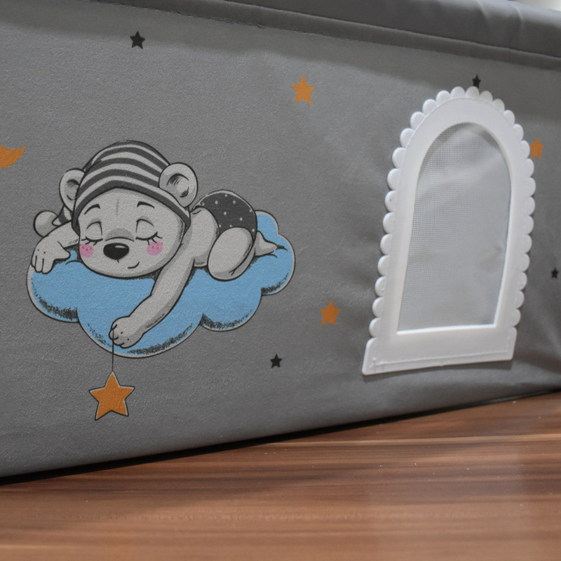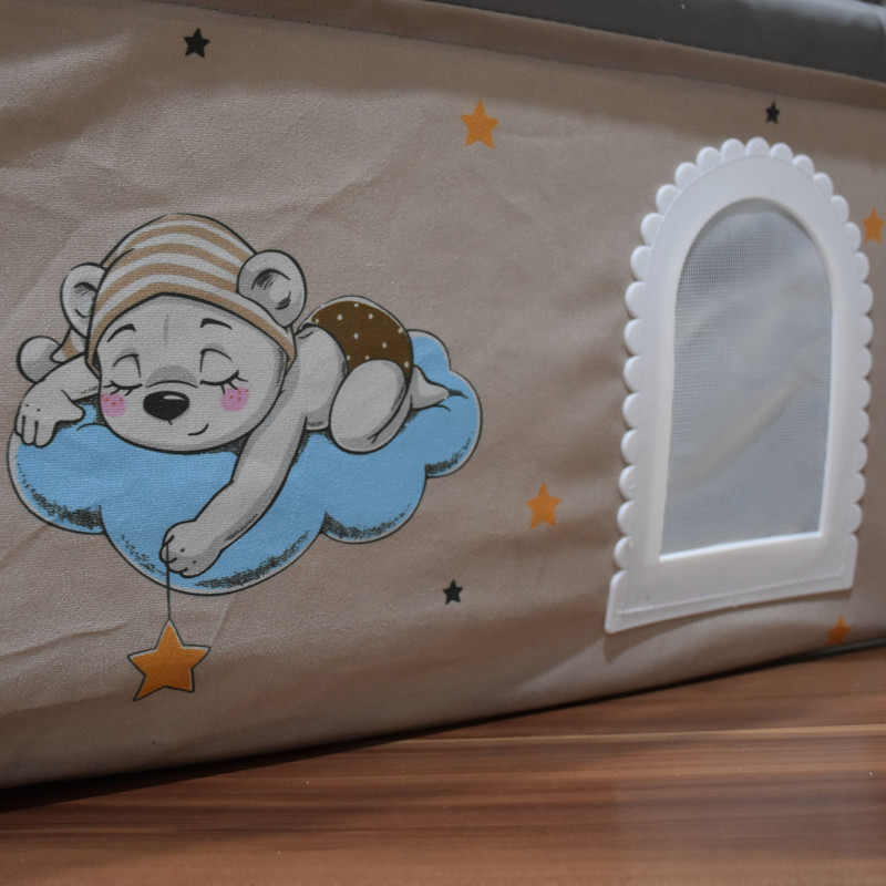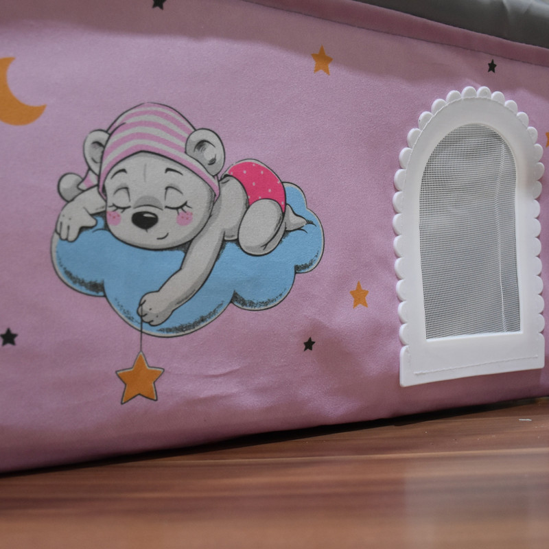2. (تخت یا تشک یا سبد) گهواره :که از جنس پارچه ی مخمل با کیفیت عالی و چاپ عروسکی میباشد. از مهم ترین مزیت های سبد گهواره، تاشو بودن و قابل شستشو بدون سبد هستش که به راحتی داخل کاور جای گذاری میشه