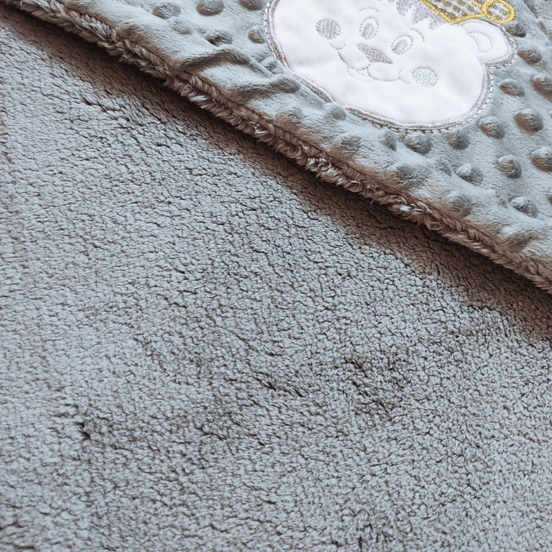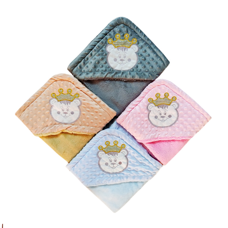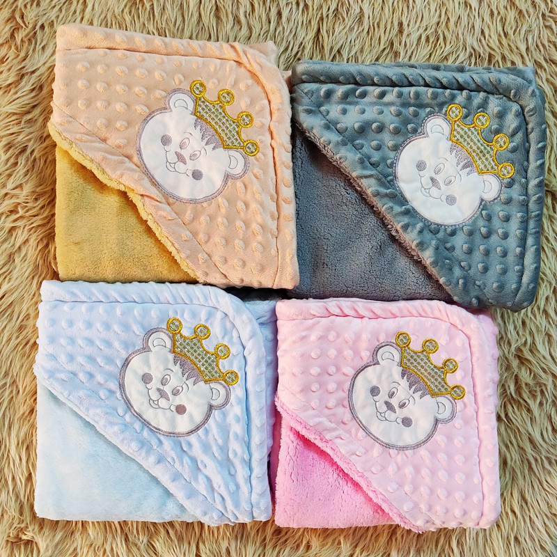 پتوی نوزاد فوق از جنس به اصطلاح مخمل حبابی و دارای لایه خز مرغوب و لطیف است ،همچنین دارای کلاه با گلدوزی زیبا ،جهت استفاده نوزادان عزیز شما میباشد ،ابعاد این پتو ۷۷×۸۰ سانتیمتر است.این محصول در چهار رنگ شاد دخترانه و پسرانه موجود میباشد.