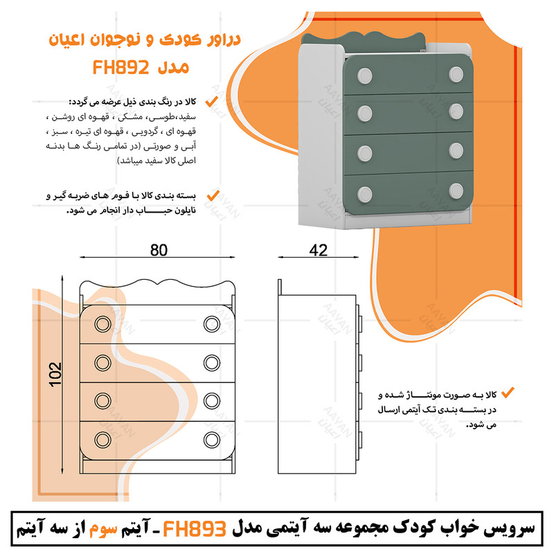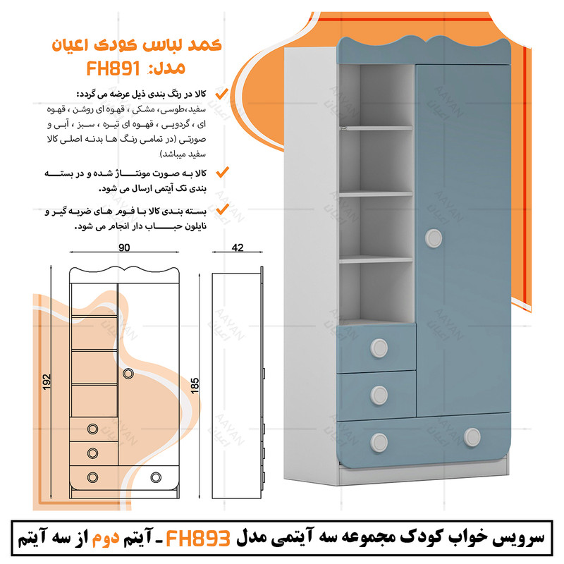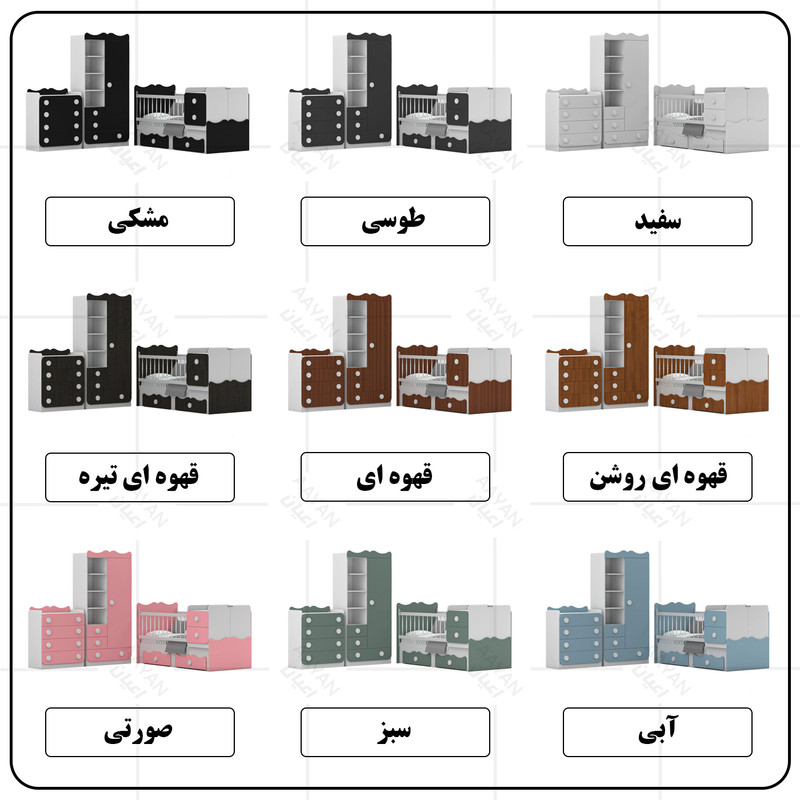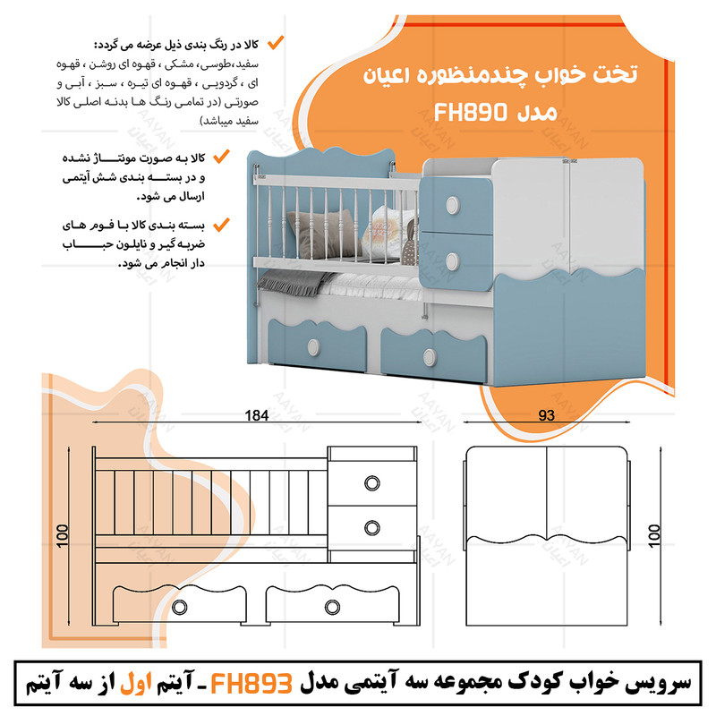 سرویس خواب کودک و نوزاد اعیان مدل FH893 مجموعه سه عددی