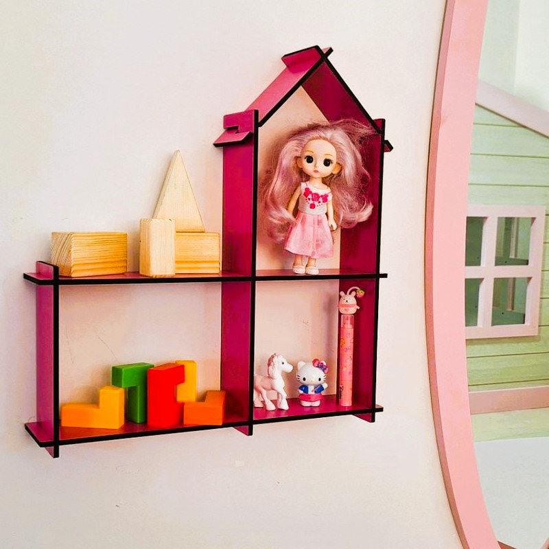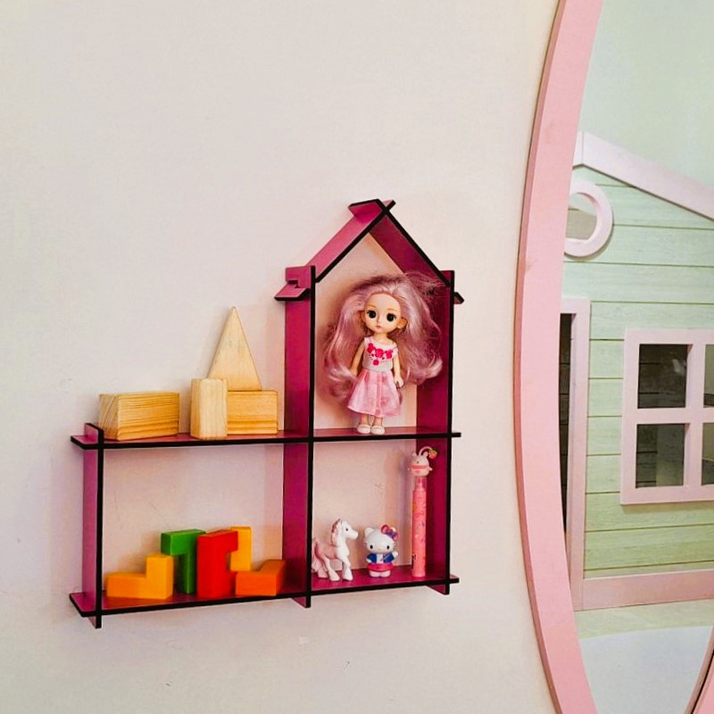 شلف دکوری اتاق کودک چوبین طرح مدل خانه سه طبقه یکی دیگر از جذابترین تولیدات این مجموعه میباشد . طراحی شلف به گونه ای می باشد که به عنوان یک اسباب بازی خونه چوبی نیز برای دختر دلبندتان قابل استفاده است . این محصول قابلیت قرارگیری روی دیوار و روی میز را دارد . روی دیوار به عنوان یک دکوری زیبا برای قرار گیری اشیای تزیینی می باشد و روی میز می توان علاوه بر اشیای تزیینی ، لوازم تحریر کوچک نیز داخل آن قرار داد .