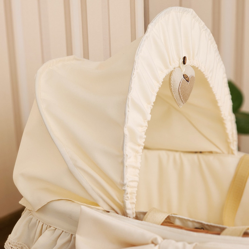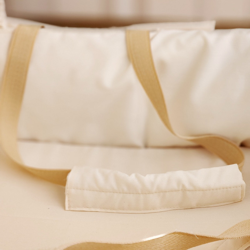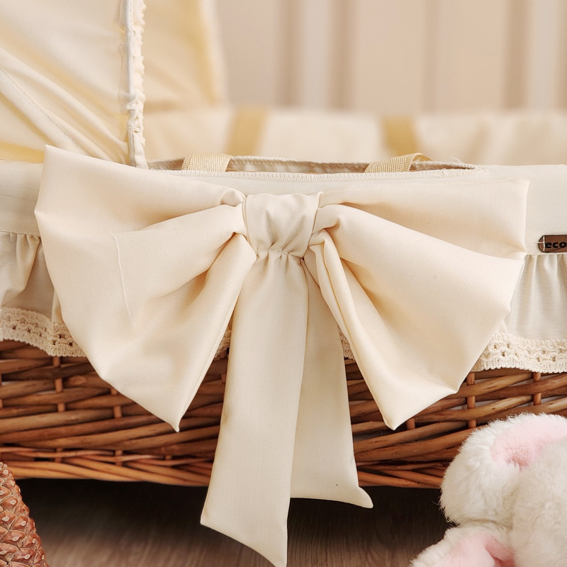همانطور که می دانید، مهمترین مزیت چنین سبد حملی تخت بودن کف آن می باشد که برای رشد ستون فقرات نوزاد مناسب می باشد. این سبد زیبا می تواند وسیله خوبی برای حمل نوزاد از بیمارستان به منزل باشد. همچنین در منزل کنار تخت مادر، یا در مهمانی یا هر مکان دیگر خارج از منزل جای خواب راحت و آرامی را برای کودک دلبند شما فراهم می کند. توجه داشته باشید که هلالی که در دو طرف زیرین سبد در نظر گرفته شده، آن را تبدیل به گهواره ای کوچک کرده که می تواند برای آرام کردن یا خواباندن کودک نیز مورد استفاده قرار گیرد. لایی پر چین و نرم سبدکو در تم خنثی، زیبایی ملایمی به آن بخشیده است. همچنین این سبد با یک تشک نرم و یک جفت دسته بند پارچه ای مخصوص کامل می شود. یک آویز قلب زیبا نصب شده روی سایه بان مقابل دیدگان کودک شما قرار گرفته است. درصورت تمایل می توانید سایر اجزای مجموعه اکوسبدکو را برحسب سلیقه برای کودک خود تهیه نمایید.