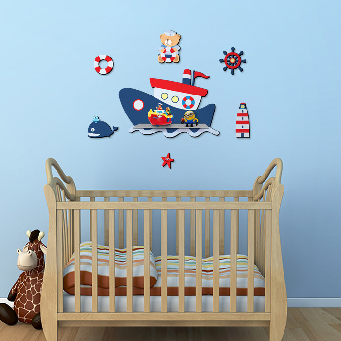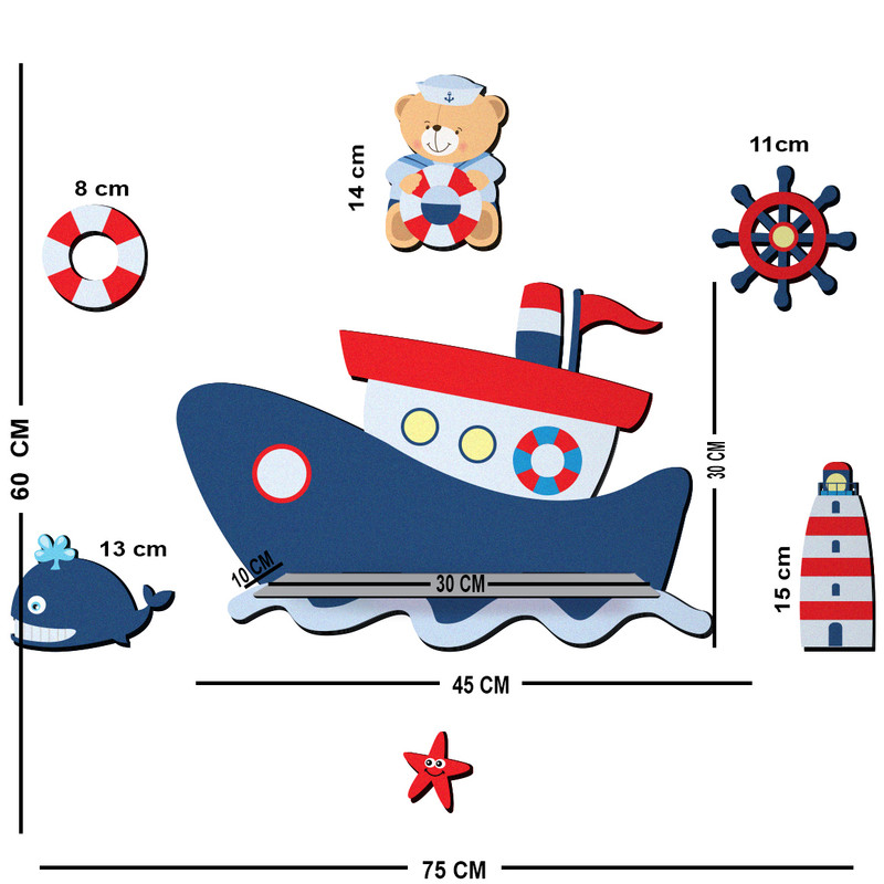 شلف دیواری اتاق کودک باروچین مدل کشتی و ملوان کد sh-49