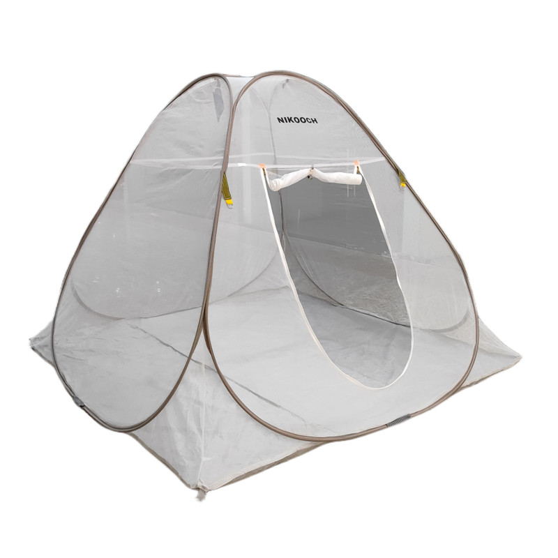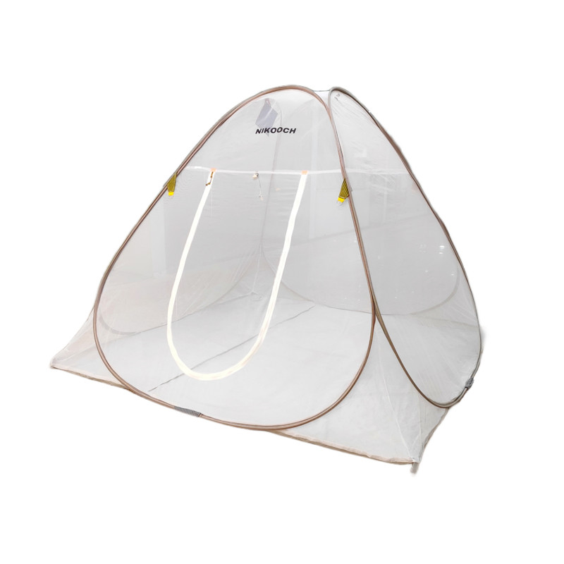 چادر پشهبند ۸ نفره نیکوچ با استفاده از پارچه حریر، عمر و دوام پشهبند را افزایش میدهد و نخکش نمیشود. توری حریر بهگونهای طراحی شده که علاوه بر فراهم کردن گردش مناسب هوا، از ورود کوچکترین حشرات نیز جلوگیری کند. سایز کف پشهبند برابر با ۲.۵×۲.۵ متر است که فضای مناسبی برای خواب راحت ۴ نفر به همراه وسایل شخصی فراهم میکند.
