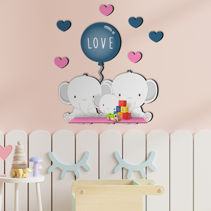 شلف دیواری اتاق کودک باروچین مدل فیل صورتی کد SH-6