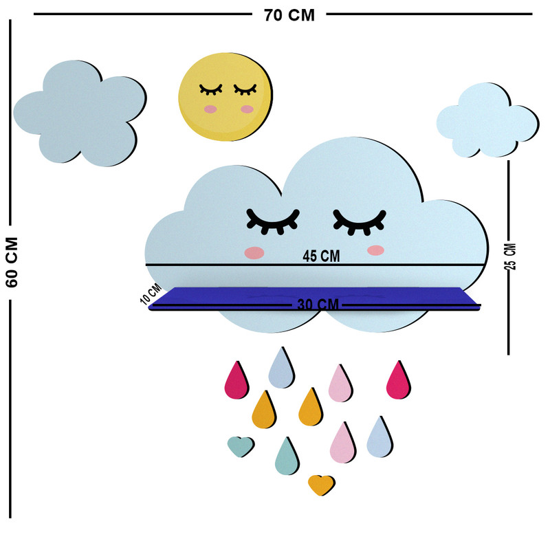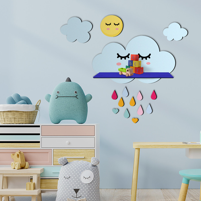 شلف دیواری اتاق کودک باروچین مدل ابر آبی کد sh-8