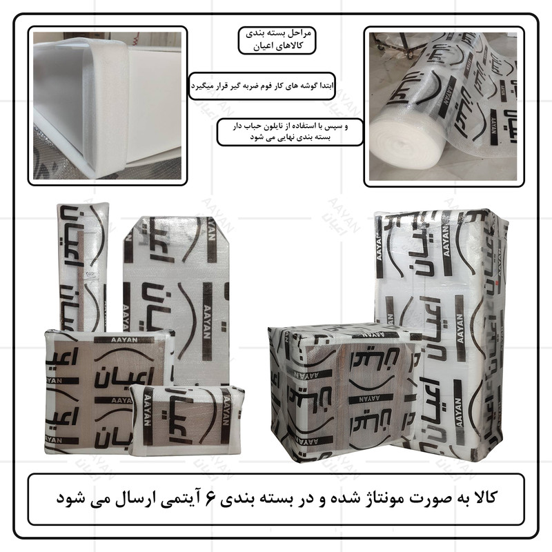 این کالا در رنگ بندی (سفید ، طوسی ، مشکی ، قهوه ای روشن ، قهوه ای (گردویی) ، قهوه ای تیره (ونگه) ، آبی ، صورتی و سبز) تولید و عرضه می گردد ، دقت نمایید که در تمامی رنگ ها بدنه ی اصلی کالا سفید می باشد(مشابه تصاویر) و معیار انتخاب رنگ ، رنگ درب های کار می باشد، توجه فرمایید که همواره چند درجه اختلاف رنگ بین تصاویر بارگزاری شده و کالای ساخته شده وجود دارد.