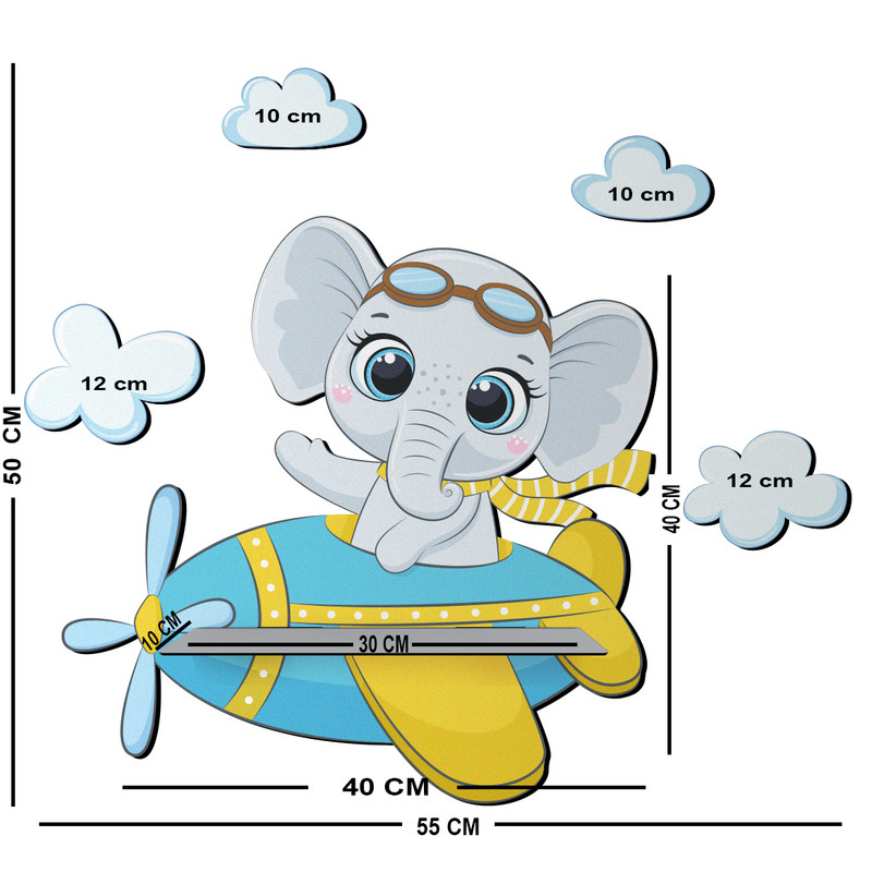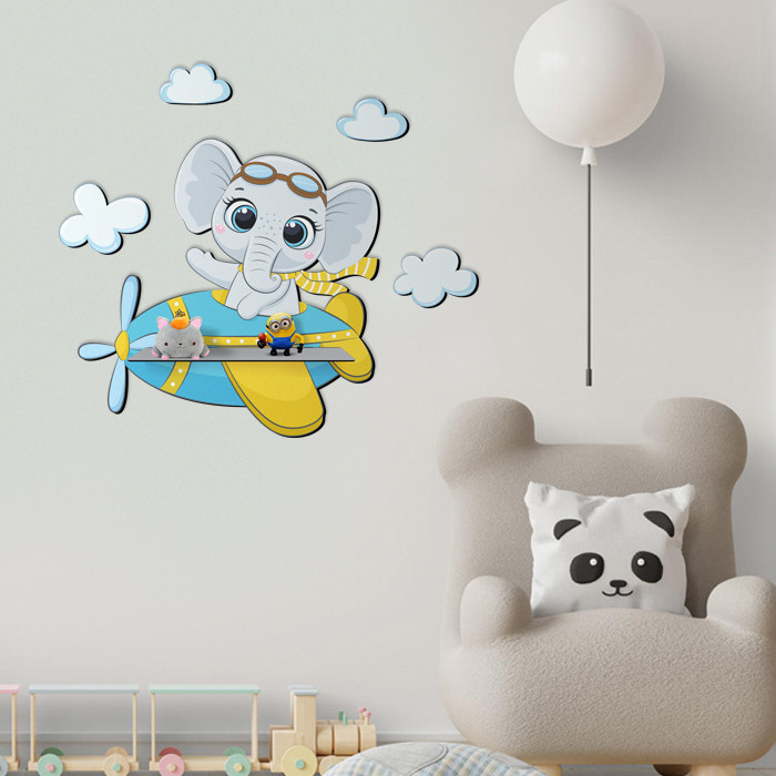 شلف دیواری اتاق کودک باروچین مدل فیل خلبان کد sh-39