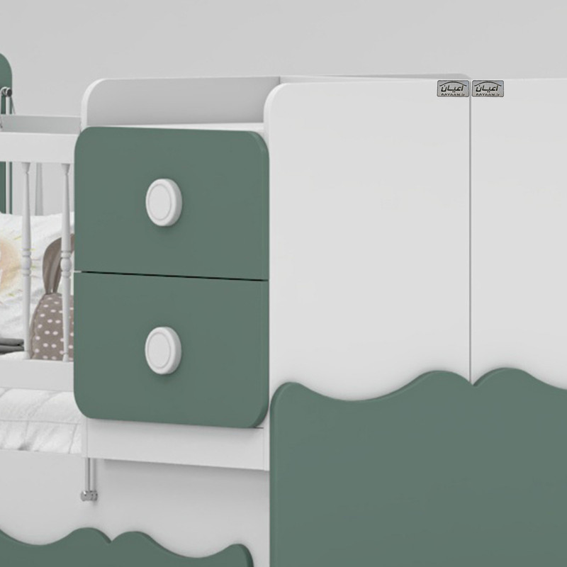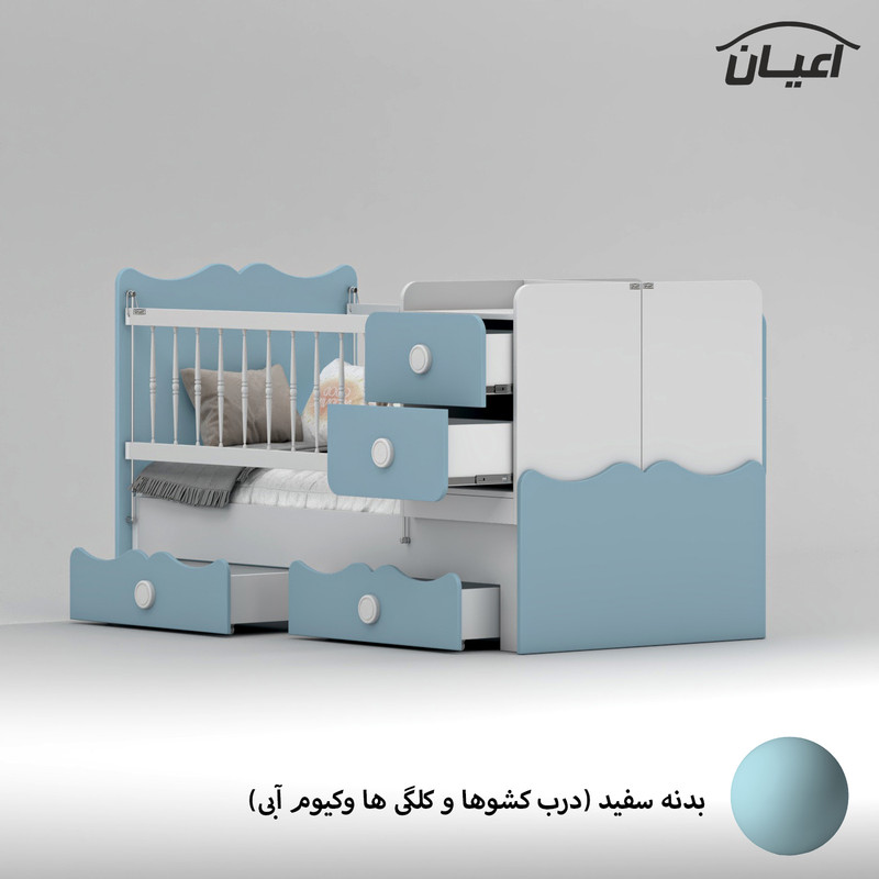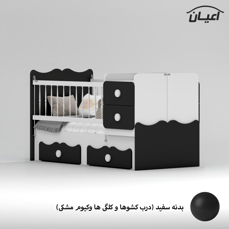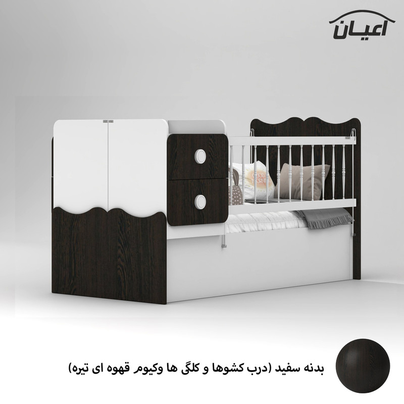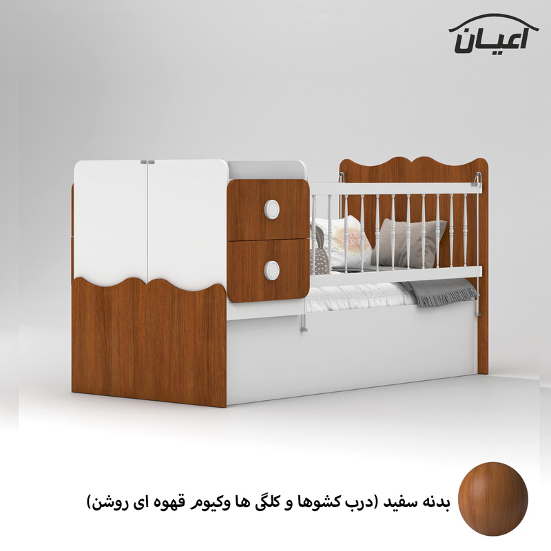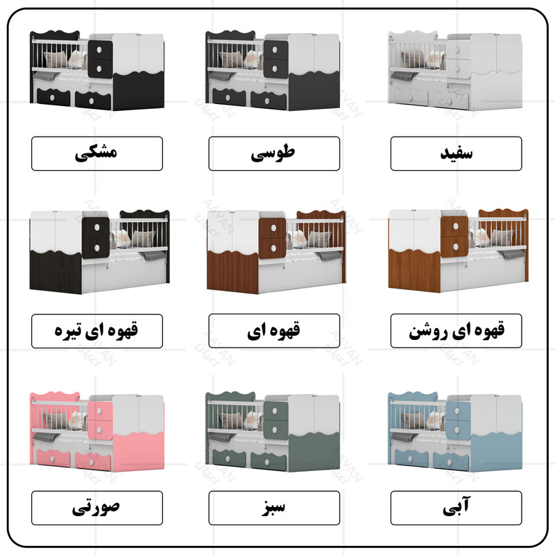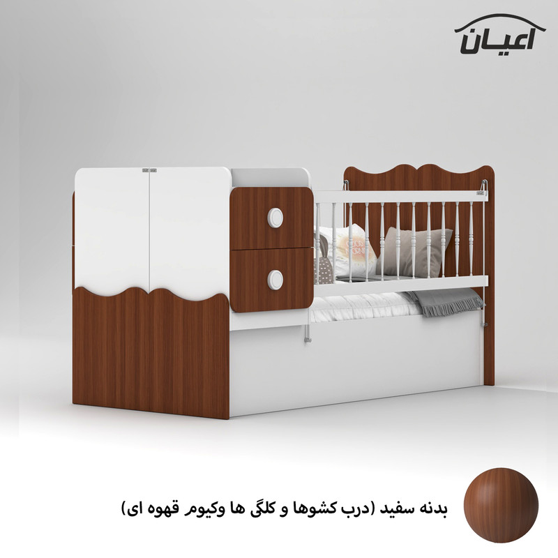 تخت خواب چند منظوره کودک و نوجوان اعیان ، جنس بدنه مغزی نئوپان با روکش ملامینه ، جنس درب کشو ها و کلگی بالا و پایین : مغزی ام دی اف با روکش وکیوم ، دارای دو پاتختی با چهار کشو با بازشوی ریل سه تکه و دو کشو با بازشوی چرخ چمدانی(ساکی)،حفاظ دو طرف کار به صورت آسانسوری و نرده ها به صورت خراطی و از جنس pvc است (دو طرف متحرک) ، کالا فاقد تشک بوده و سایز تشک مناسب کار 80×180سانت می باشد. این کالا در رنگ بندی (سفید ، طوسی ، مشکی ، قهوه ای روشن ، قهوه ای (گردویی) ، قهوه ای تیره (ونگه) ، آبی ، صورتی و سبز) تولید و عرضه می گردد ، دقت کنید که در تمامی رنگ ها بدنه ی اصلی کالا سفید می باشد و معیار انتخاب رنگ ، رنگ درب کشوها و کلگی ها می باشد، توجه فرمایید که همواره چند درجه اختلاف رنگ بین تصاویر بارگزاری شده و کالای ساخته شده وجود دارد. برای انتخاب کمد لباس ست همین تخت خواب کد FH891 و برای انتخاب دراور ست همین تخت خواب کد FH892 را جست و جو و انتخاب کنید