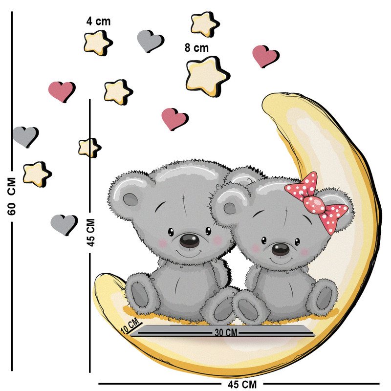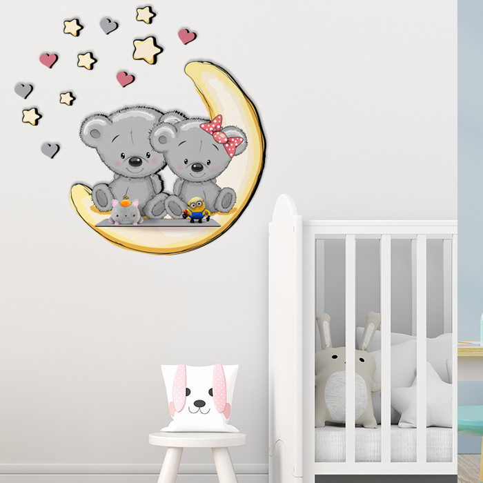 شلف دیواری اتاق کودک باروچین مدل خرسی و ماه کد sh-19