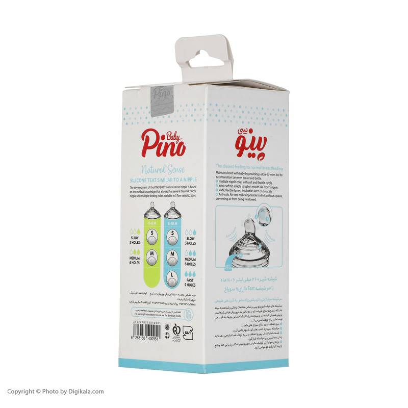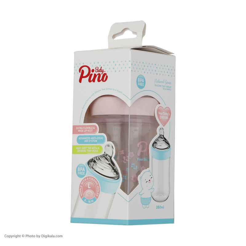 شیشه شیر پینو بیبی مدل Natural sense کد L6-18 ظرفیت 260 میلی لیتر