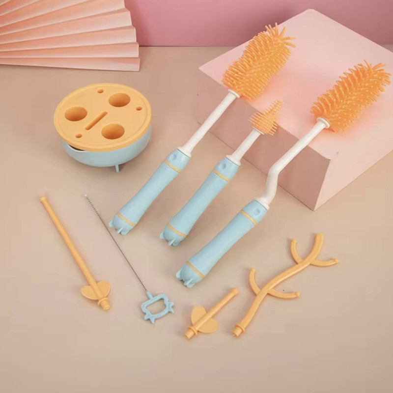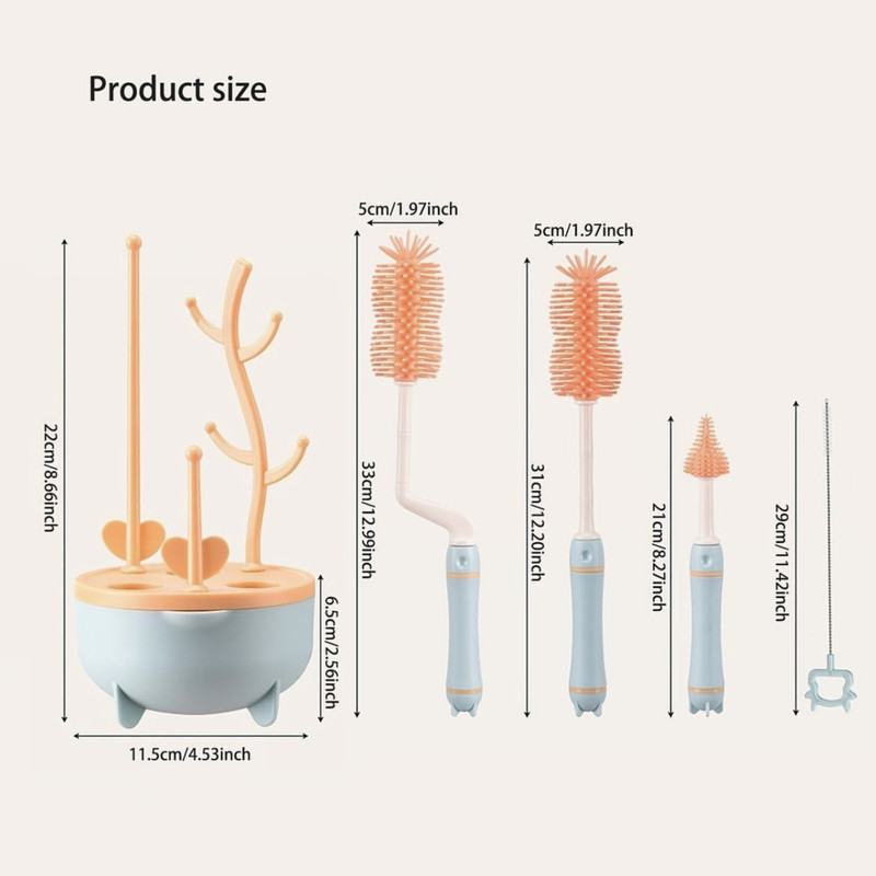 این ست شامل یک برس با حالت چرخشی برای شستشوی آسان تر شیشه، یک برس کوچک داخل دسته برای شستشوی سرشیشه و یک عدد نی شور درون شیشه شور میباشد. همچنین دارای سه عدد شاخک برای خشک کردن شیشه، سرشیشه و پستانک است.