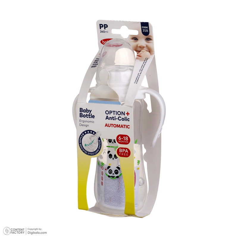 شیشه شیر بیبی لند مدل کلاسیک فندقی دسته دار کد 05555-pp گنجایش 240 میلی لیتر