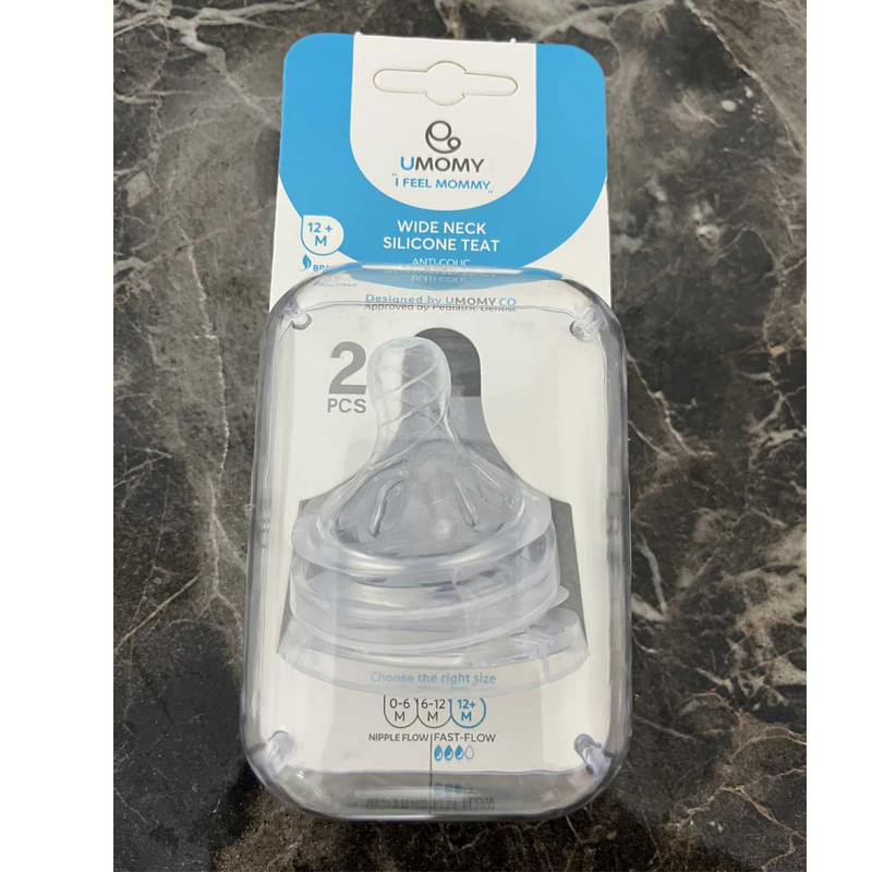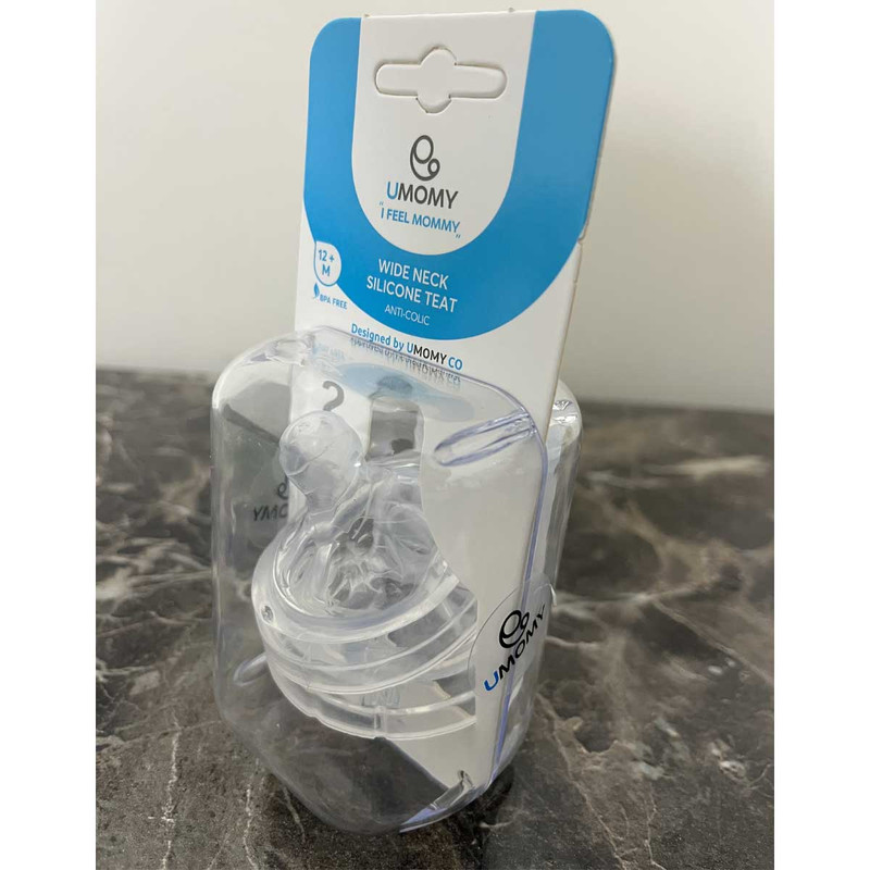 سرشیشه دهانه عریض یومامی طرح مهندسی معکوس سرشیشه نچرال اونت philips avent دو عددی مناسب 12 ماهگی به بعد | آنتی کولیک سرشیشه سیلیکونی بچه دهانه عریض یومامی 12 ماه به بعد Umomy Wide Neck Silicone Teat یک سرشیشه کاملا بهداشتی و تهیه شده از از سیلیکون 100٪ بهداشتی با درجه بندی غذایی است این سر شیشه با 3 سوراخ خروجی شیر، شیر خارج شده از سرشیشه را کنترل کرده تا شیر با فشار مناسبتری به دهان کودک برسد. از این جهت مناسب برای کودکان از 12 ماهگی به بعد است. ویژگی دیگر سرشیشه دهانه عریض سیلیکونی یومامی خاصیت آنتی کولیک آن است. این مزیت باعث می شود که میزان ورود مایعات به دهان کودک کنترل شده انجام شود و همچنین از ورود هوا به داخل معده نوزاد جلوگیری کند. این مزیت ریسک ابتلا نوزادان به کولیک و نفخ را کاهش می دهد.
