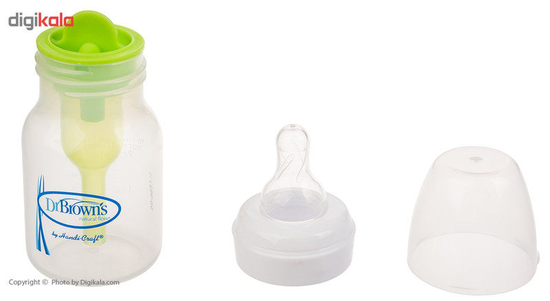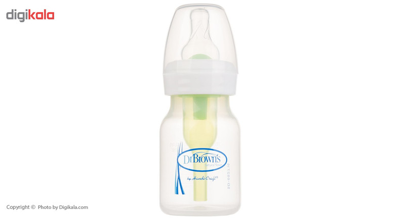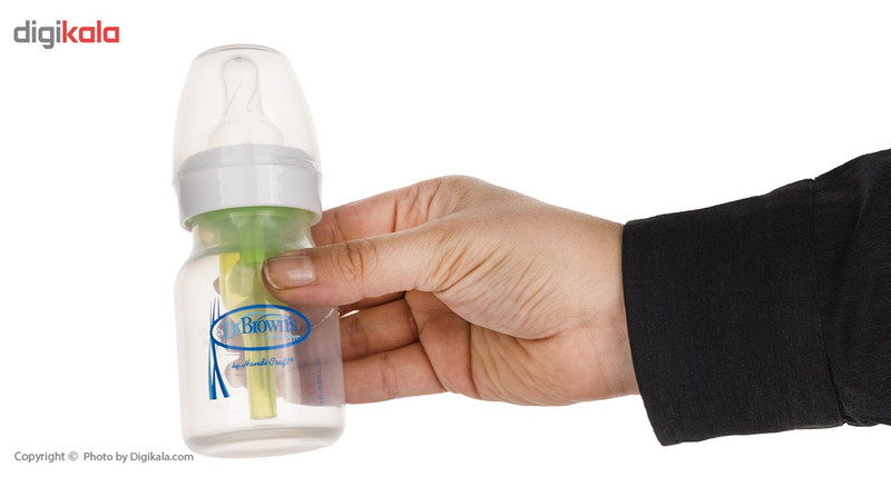 محصولی که میبینیم شیشهشیر برند «دکتربراونز» است. این شیشهشیر دارای سری گرد معمولی و از جنس سیلیکونی نرم و انعطافپذیر است. جنس بدنه این شیشهها بهگونهای است که مواد مغذی شیر را تا 20 دقیقه در خود حفظ میکنند و مانع از جذب این ویتامینها و مواد مفید به بدنه شیشه میشوند. تمامی محصولات برند «دکتر براونز» از جمله این شیشهشیرها فاقد ماده مضرBPA هستند. این محصول ضد نفخ و آنتیکولیک است. این شیشهشیر با ظرفیت 60 میلیلیتر، از بدو تولد نوزاد قابل استفاده است. شیشهشیرهای برند «دکتربراونز» کیفیت فوقالعاده بالایی داشته و مطابق با استانداردهای اروپا ساخته شده است. برند امریکایی «دکتربراونز» یکی از برترین برندهای محصولات نوزاد در جهان شناخته شده است.