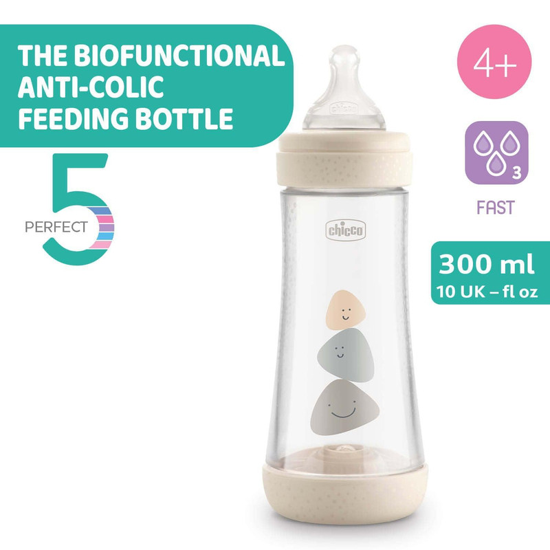 شیشه شیر Perfect5 کودک است که برای حمایت از طبیعت، پیروی از نیازها، ریتم و شدت مکیدن، ویژگی های منحصر به فرد هر کودک طراحی شده است. بطری Biofonctional است در واقع نیازهای هر کودک را حس می کند و بلافاصله و به طور مداوم با ریتم فیزیولوژیکی مکیدن او سازگار می شود و اثر ضد قولنج اثبات شده و حداکثر رفاه را در طول و بعد از شیردهی تضمین می کندیک تغذیه مایع و منظم به سلامت جسمی و روانی کودک کمک می کند و به دلیل دریافت هوای کمتر به مقابله با پدیده فیزیولوژیک قولنج کمک می کند.شکل پیششکل، متقارن و کشیده سرپستانک فیزیو امکان پذیرش راحتتر، چسبیدن صحیح لبها و حرکت پریستالتیک زبان در هنگام مکیدن را فراهم میکند.شیشه شیر BIOFUNCTIONAL نه تنها دارای ویژگی های پیشرفته ترین سیستم ضد قولنج است، بلکه تمام متغیرهای مهم در دوران شیردهی را تنظیم می کند،و مورد قبول 98 درصد کودکان.