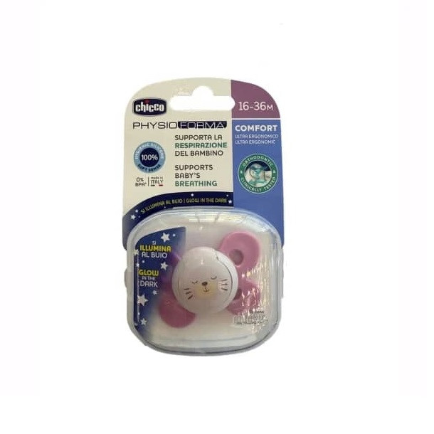 پستانک فیزیو کامفورت شبرنگ چیکو در حقیقت یک پستانک ارتودنسی است که از آسیب به دندان کودک جلوگیری میکند. این پستانک سبک و بادوام بوده و طراحی زیبایی دارد و شبرنگ میباشد.