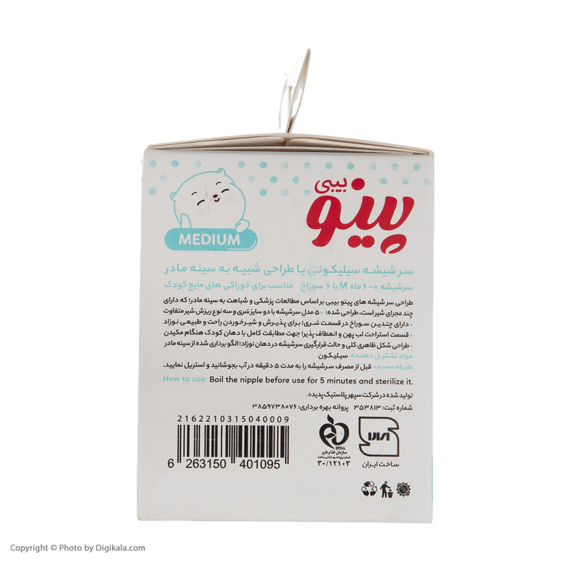 سایز M : دارای 6 سوراخ که جریان ریزش متوسطی داشته و مناسب برای مایعاتی با غلظت کم، مثل شیر مادر و شیر خشک است.