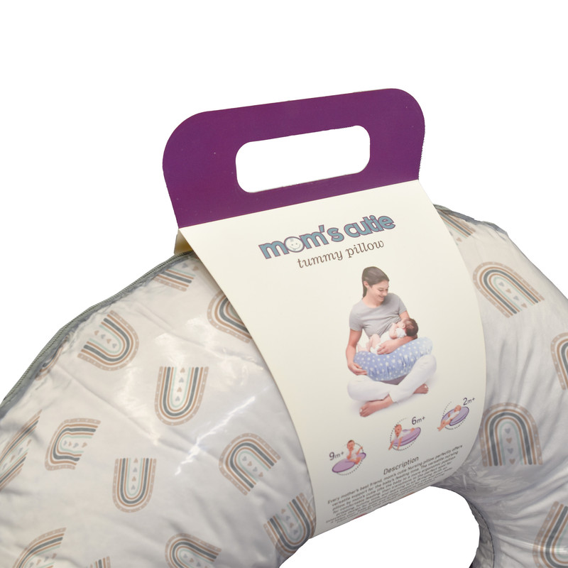 از دیگر محصولات مامزکیوتی بالش شیردهی میباشد که یک بالش چند منظوره است. این بالش به عنوان بالش شیردهی به راحتی با بند به کمر مادر بسته می شود و مادر و نوزاد را در وضعیت ارگونومیک قرار می دهد تا شیر دادن را راحت تر کند و از کمردرد و آسیب های گردن و شانه جلوگیری کند. هم چنین در این حالت می توانید از جیب های این بالش برای قرار دادن پد شیردهی یا وسایل دیگر استفاده کنید. کاربرد دیگر این بالش به عنوان بالش تامی تایم است. برای زمانی که لازم است نوزاد به شکم دراز بکشد. در این حالت می توانید به دو حلقه ای که در بالش وجود دارد دندان گیر یا اسباب بازی های مورد علاقه فرزندتان را آویزان کنید تا کودک از این وضعیت خوابیدن لذت بیشتری ببرد. کاربرد دیگر این بالش برای آموزش نشستن وبه عنوان نشیمن کودک است تا کودک در محیطی ایمن و نرم باشد و نگرانی از افتادن کودک به طرفین وجود نداشته باشد. در این حالت بهتر است با وارو کردن جیب ها بند را درون جیب های دو طرف بالش پنهان کنید تا از دسترس کودک خارج شوند. روکش این بالش از پارچه صد در صد پنبه ای تهیه شده، زیپ دارد و قابل جدا شدن و شستشو می باشد.