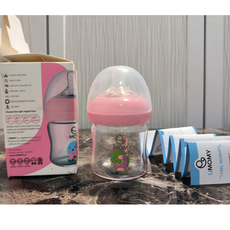 محصولی که میبینید در دو رنگ صورتی و ابی ، شیشهشیر برند «یومامی » مدل نچرال است. این مجصول بومی سازی شده شیشه شیر برند فیلیپس اونت philips avent مدل Natural می باشد، این شیشهشیر با جریان خروجی آهسته مخصوص نوزادان از بدو تولد است. این محصول با بدنهای از جنس پیرکس مقاوم و سری سیلیکونی نچرال Natural ، ظرفیتی برابر90 میلیلیتر دارد. بدنهی این کار از پیرکس مرغوبی ساخته شده و در فرایند تولید آن، ماده مضر BPA به کار نرفته است. این بدنه طراحی ارگونومیکی دارد و روی آن درجهبندی شده است. سری این شیشهشیر انعطافپذیر است و هیچگونه نشتی ندارد. میزان جریان خروجی مایعات از این سری آهسته بوده و با توجه به این میزان خروجی، از بدو تولد نوزاد قابلاستفاده است. همچنین به دلیل وجود سوپاپهای طراحیشده روی این سری سیلیکونی، این شیشهشیر ضدنفخ است. علاوهبراین، این شیشه به درپوشی بیرنگ و شفاف مجهز است که بهخوبی از سری سیلیکونی دربرابر آلودگی محافظت میکند. بدنهی ارگونومیک این شیشهشیر باعث دردستگرفتن راحت آن شده، همچنین طراحی گرد سرشیشه مشابه سینه مادر، باعث میشود نوزاد بهخوبی با آن ارتباط برقرار کند. این شیشهشیر قابلیت استریل دارد و میتوانید آن را به صورت دستی و یا در ماشین ظرفشویی بشویید. توجه داشته باشد سر شیشه و بدنه این شیشه شیر قابلیت سوییچ شدن با شیشه شیر AVENT مدل Natural را دارا می باشد.