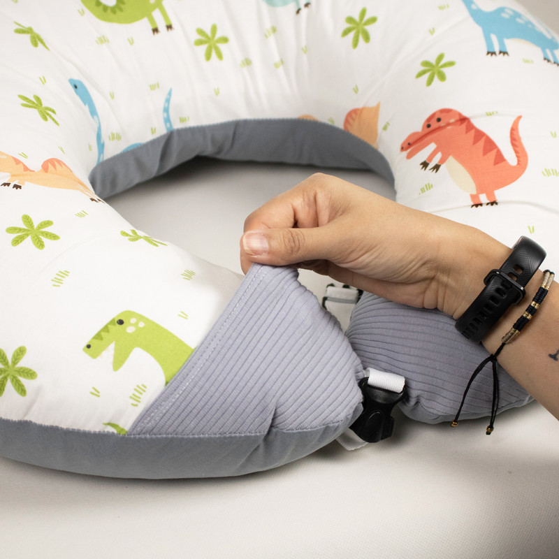 بالش تامی پیلو از برند دی روحه DieRuhe یک بالش چند منظوره است. این بالش به عنوان بالش شیردهی به راحتی با بند به کمر مادر بسته می شود و مادر و نوزاد را در وضعیت ارگونومیک قرار می دهد تا شیر دادن را راحت تر کند و از کمردرد و آسیب های گردن و شانه جلوگیری کند. هم چنین در این حالت می توانید از جیب های این بالش برای قرار دادن پد شیردهی یا وسایل دیگر استفاده کنید. کاربرد دیگر این بالش به عنوان بالش تامی تایم است. برای زمانی که لازم است نوزاد به شکم دراز بکشد. در این حالت می توانید به دو حلقه ای که در بالش وجود دارد دندان گیر یا اسباب بازی های مورد علاقه فرزندتان را آویزان کنید تا کودک از این وضعیت خوابیدن لذت بیشتری ببرد. کاربرد دیگر این بالش برای آموزش نشستن وبه عنوان نشیمن کودک است تا کودک در محیطی ایمن و نرم باشد و نگرانی از افتادن کودک به طرفین وجود نداشته باشد. در این حالت بهتر است با وارو کردن جیب ها بند را درون جیب های دو طرف بالش پنهان کنید تا از دسترس کودک خارج شوند.