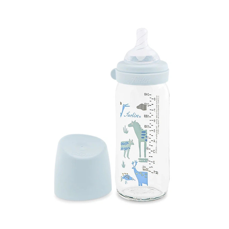 شیشه شیر پیرکس 240 میل ضد نفخ فارلین, جنس این شیشه شیر از آلفا 33 می باشد و 3 برابر شیشه شیرهای دیگر توان تحمل حرارت را دارد و همچنین مقاوم در برابر شوک حرارتی می باشد. سرشیشه این شیشه شیر از سیلیکون می باشد و توان تحمل حرارت تا 180 درجه را دارد. سرشیشه به کار رفته در این شیشه شیر فرم سینه مادر را داشته. این شیشه شیر با تکونولوژی آنتی کولیک ساخته شده است.از ویژگی های آن مقاوم در برابر شوک حرارتی مقاوم در برابر دمای بالا سرشیشه مقاوم در برابر دمای بالا, شستشوی آسان، بدون باقی مانده ی لکه و بوی شیر بر روی شیشه.