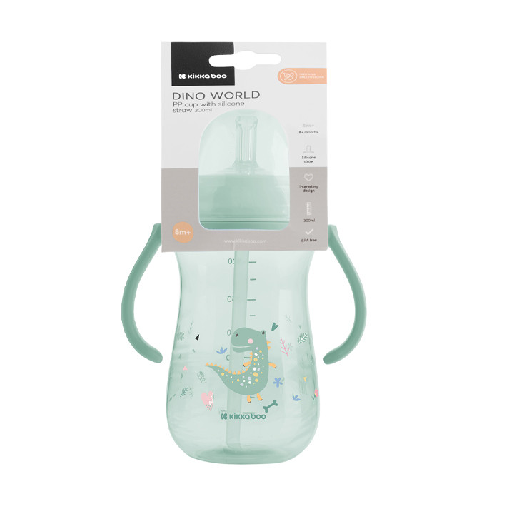 لیوان نی دار کیکابو مدل Dino world، دارای نی سیلیکونی نرم است و برای کودکان از 8 ماهگی به بالا مورد استفاده قرار میگیرد.حجم این لیوان 300 میل بوده و دارای 2 دسته در اطراف است که گرفتن را برای کودک آسان میکند.