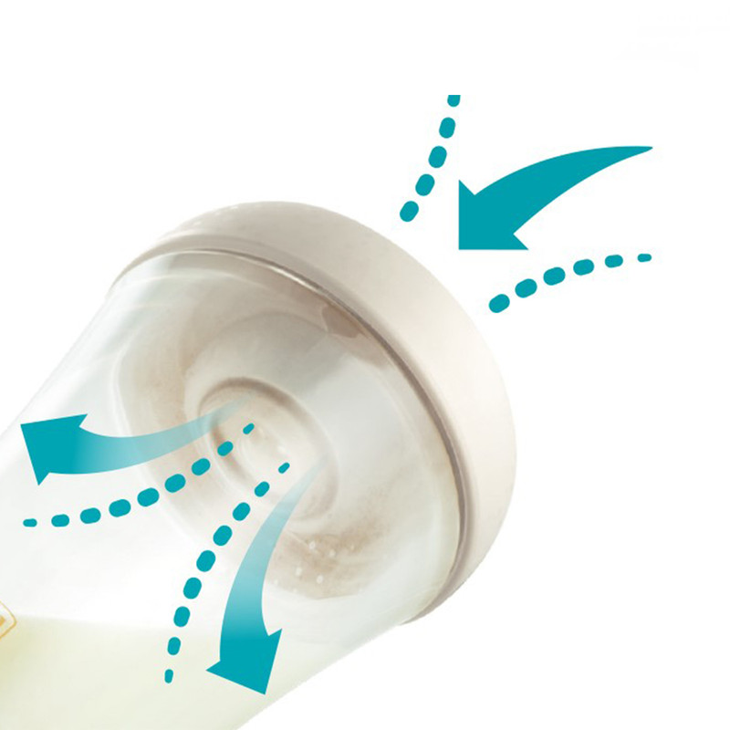 شیشه شیر ضد قولنج بیو فانکشنال: شیشه شیر پرفکت 5 نیازهای هر نوزاد را حس می کند و بلافاصله و به طور مداوم با الگوی مکیدن هر کودک سازگار می شود و اثر ضد کولیک و حداکثر راحتی را در حین تغذیه ارائه می دهد. 5 مزیت، 1 بطری: شیشه شیر پرفکت 5 برای جلوگیری از بلع هوا طراحی شده است، با ریتم طبیعی مکیدن کودک سازگار است، از چفت شدن کامل اطمینان می دهد، احساس مادر و حداکثر بهداشت را فراهم می کند. دارای یک دریچه ضد کولیک منحصر به فرد است که به نام غشای تعادل شناخته می شود. این دریچه در پایه بطری اجازه می دهد تا هوا بدون مخلوط شدن با شیر وارد بطری شود، بنابراین از ایجاد خلاء جلوگیری می کند و تغذیه صاف و مداوم را امکان پذیر می کند ،سیستم انحصاری Intui-Flow: عملکرد ترکیبی غشای تعادلی و سرپستانک فیزیوتراپی یک تغذیه بصری را تقویت می کند، بنابراین به طور طبیعی با نیروی مکیدن و سبک تغذیه هر کودک که منحصر به فرد است، سازگار می شود. Physio Teat (نوک پستان) برای پرفکت لچ: شکل متقارن و صاف سرپستانک فیزیوتراپی الهام گرفته شده از شکل نوک سینه مادر است که به کودک اجازه می دهد تا حرکت طبیعی مکیدن خود را دنبال کند.برای حداکثر راحتی نوزاد، سرپستانک Physio از مواد سیلیکونی نرم ساخته شده است که در هنگام مکیدن حسی مخملی و دلپذیر به او می دهد. و شکل ارگونومیک بطری باعث می شود که آن را حتی با دستان کوچک کودک به راحتی در دست بگیرید.بررسی ایمنی: ساخته شده از مواد پلی پروپیلن بدون BPA با کیفیت بالا، شیشه شیر Chicco Perfect 5 Feeding حداکثر محافظت را برای نوزادان تضمین می کند. تمیز کردن آسان برای حداکثر بهداشت: پایه غیرپیچ شده به شما امکان می دهد بطری را برای تمیز کردن سریع و مناسب هر قسمت به راحتی جدا کنید.