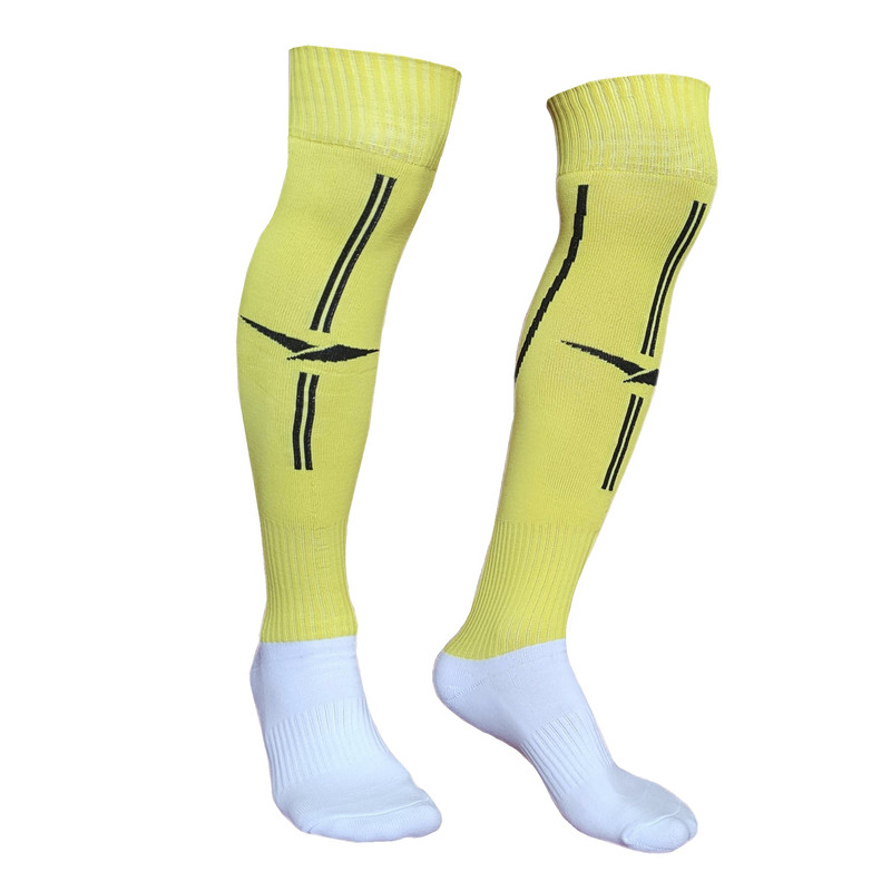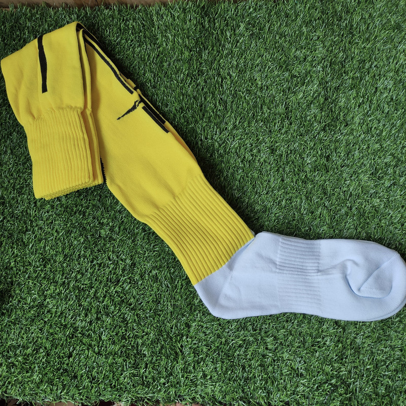 جوراب ورزشی ساق بلند فوتبالی مدل کف حوله ای مناسب رشته های فوتبال و فوتسال این جوراب در قسمت کف آن از داخل جهت جذب عرق و رطوبت پا و جلوگیری از لغزش از جنس حوله ای به کار برده شده است و نیز در قسمت ساق جوراب نیز جهت استحکام و تثبیت قلم بند ها از پارچه ی کشباف تولید شده است . توصیه می شود جهت ماندگاری بهتر جوراب آن را با آب دمای زیر 30 درجه سانتی گراد شستشو دهید و جهت خشک نمودن آن از قرار دادن بر روی وسایل گرمایشی و مقابل نور شدید آفتاب خود داری گردد.
