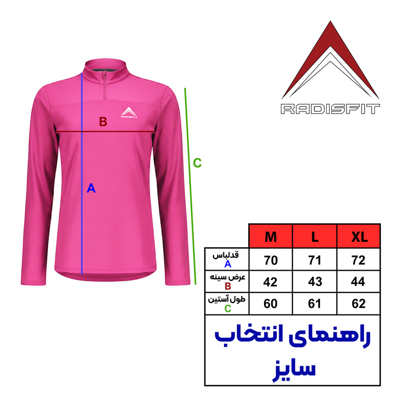 تی شرت ورزشی آستین بلند زنانه رادیس فیت مدل نیم زیپ TS002