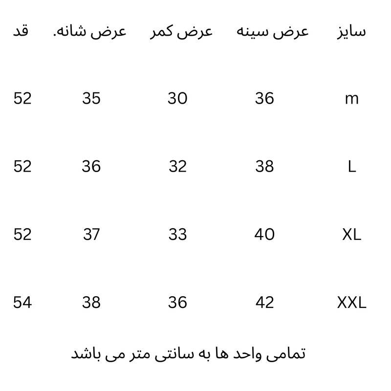 راهنمای کامل انتخاب سایز در بخش تصاویر محصول قرار داده شده است. لطفاً پیش از خرید، جدول سایز را به دقت بررسی کنید و سایز مناسب خود را انتخاب کنید.