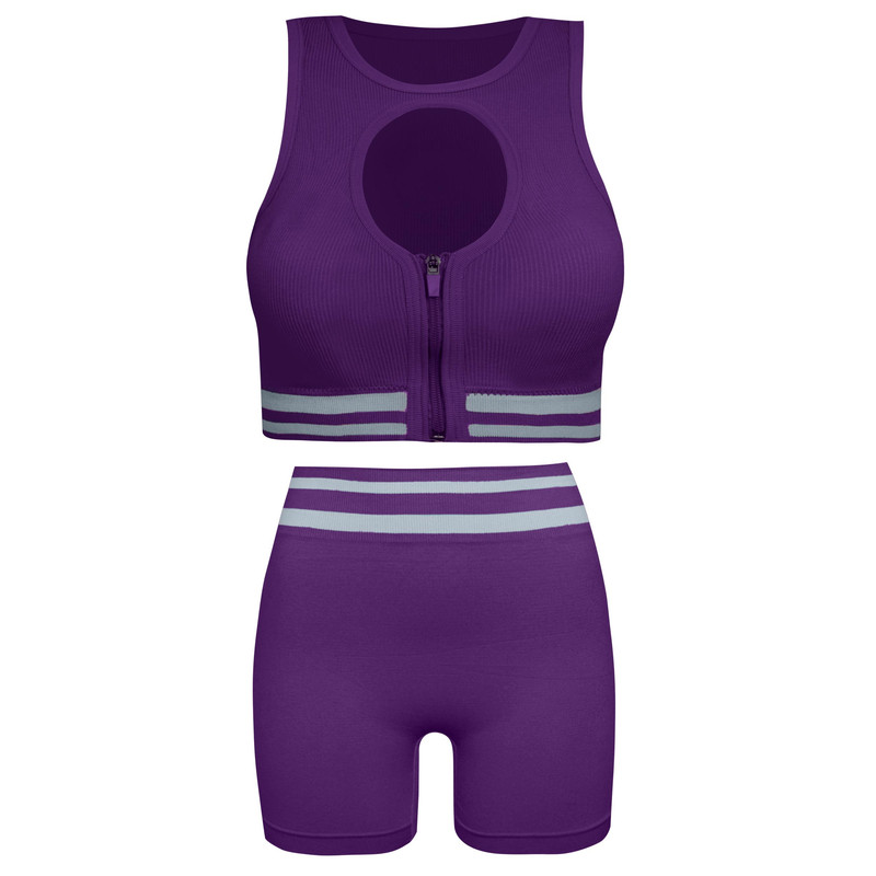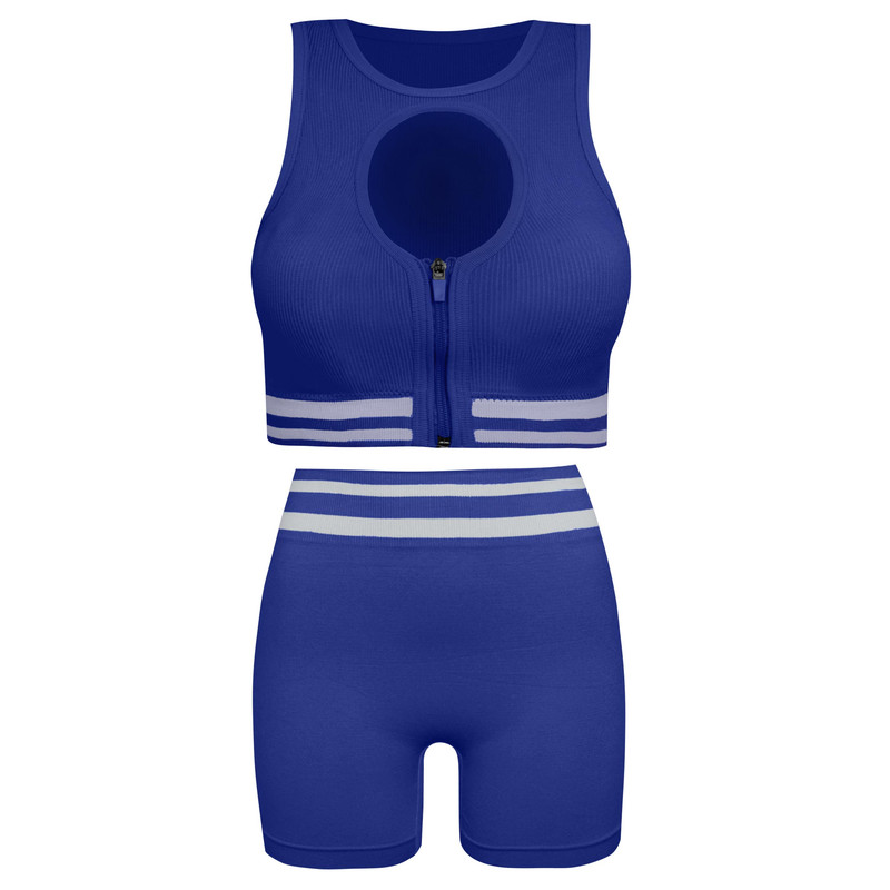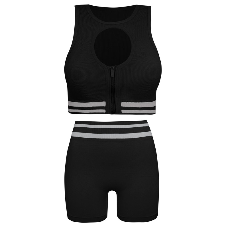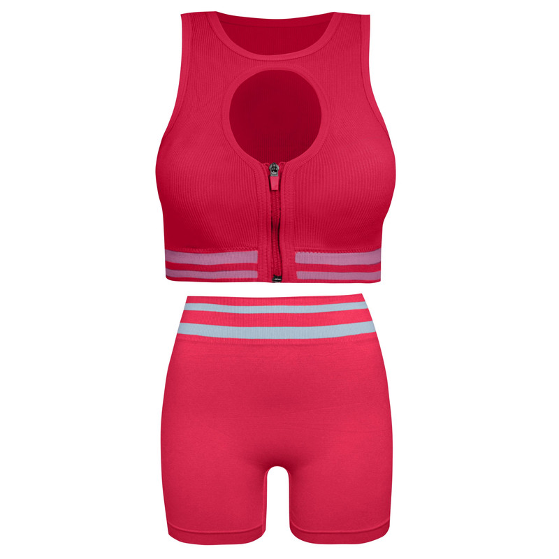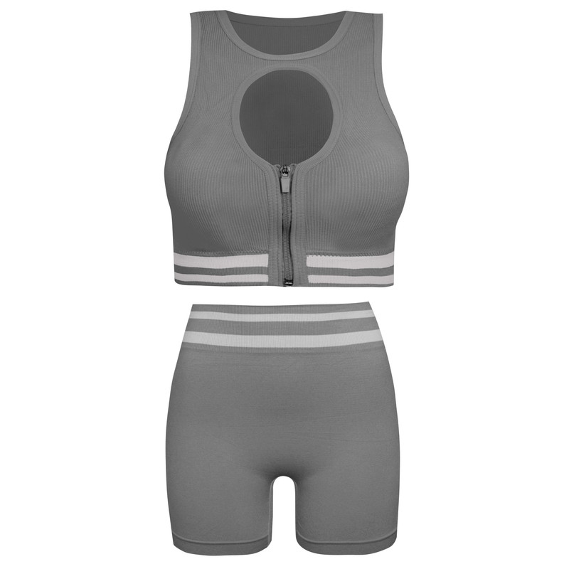 ست نیم تنه و شلوارک ورزشی زنانه ماییلدا مدل زیپ دار پشت چین دار کد 5243-8319