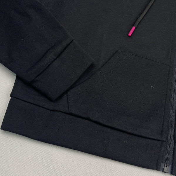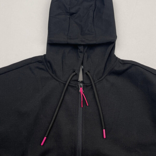 این سویشرت ساخت کشور آلمان می باشد. مدل کراپ است و بسیار با کیفیت می باشد. در ساخت آن به منظور راحتی بیشتر از پنبه استفاده شده است. دارای دو جیب کناری است و کلاه آن با بند کشی قابل تنظیم است. زیپ آن از نوع بسیار با کیفیت YKK است.