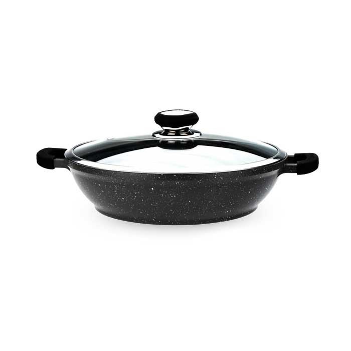 دستهبندی: قابلمه و تابهابعاد: 37x28.5x7 سانتیمتروزن: 1800 گرمسایز: 28امکانات ظاهری: درجنس بدنه : آلومینیومجنس روکش داخلی : گرانیتتعداد دسته : دو عددسایر توضیحات : آلومینیوم دایکست جنس درپوش: شیشه با رینگ فلزی جنس دستگیره و قپه: باکالیترنگ : طوسینمایش بیشتر