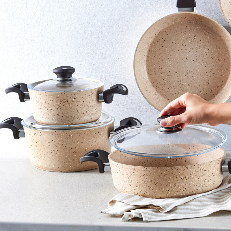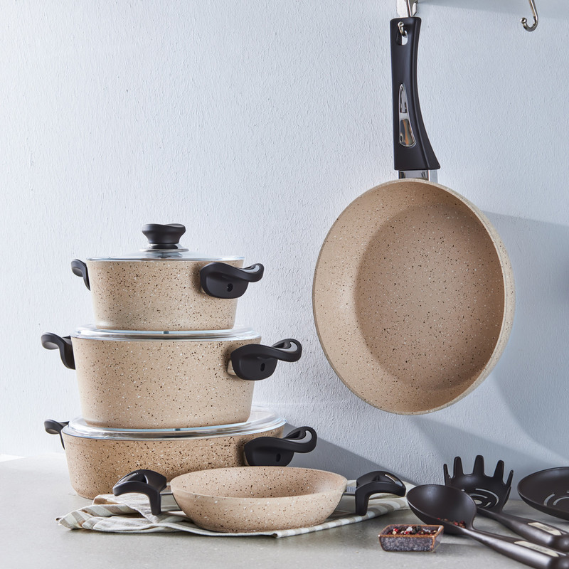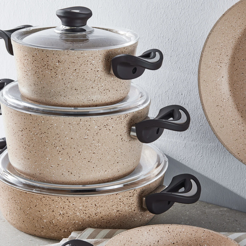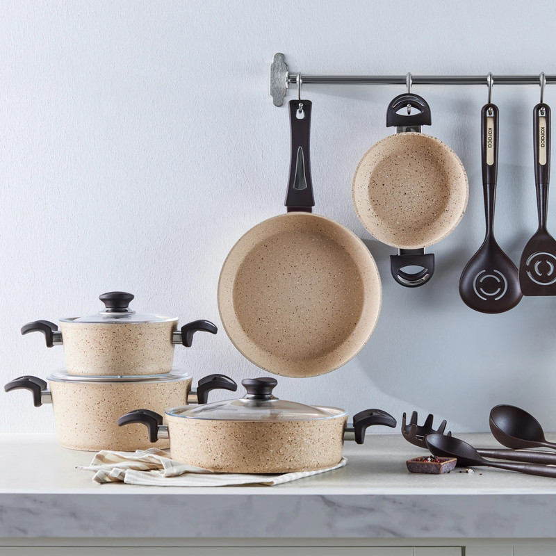 سرویس قابلمه وتابه بیوگرانیتی 13 پارچه کاراجا مدل Hazel Biogranit همراه با ابزار آشپزی