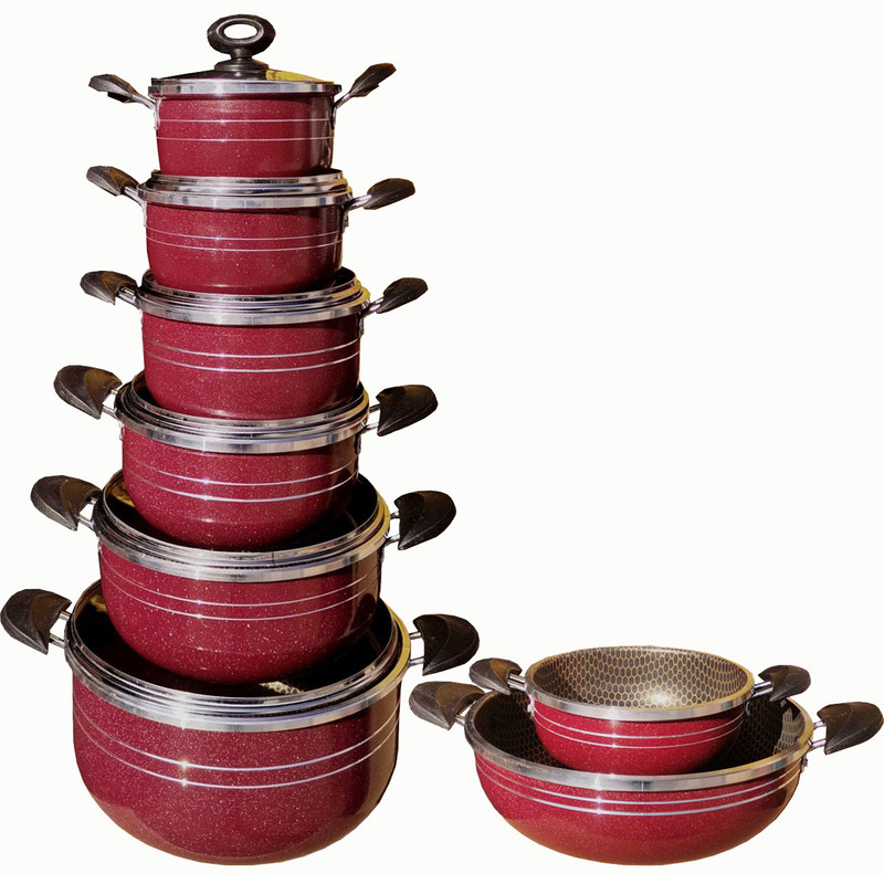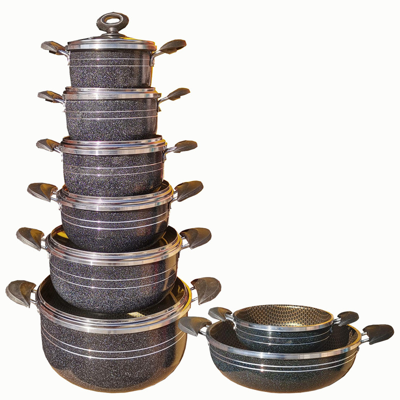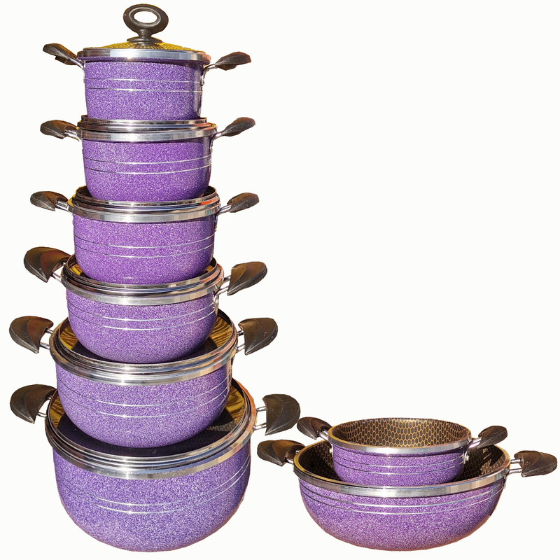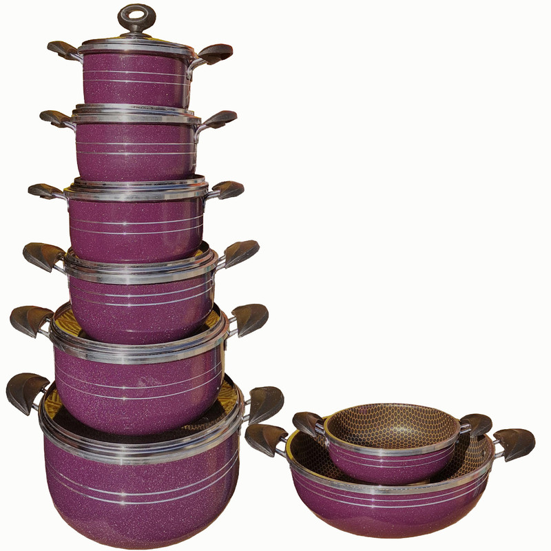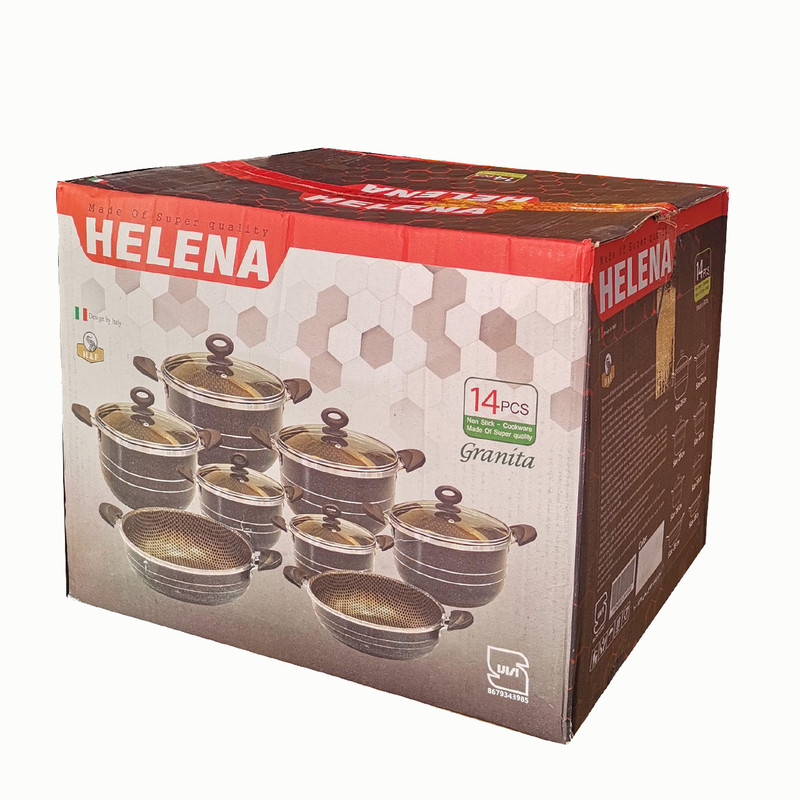 سرویس 14پارچه تابه و قابلمه هلنا سرویس قابلمه 14 پارچه هلنا طرح زنبوری دارای: - شش عدد قابلمه ی 1، 2، 3، 4، 6 و 8 نفره و دو عدد تابه 3 و 8 نفره می باشد. - قابلمه ها دارای شش عدد درب پیرکس هستند و برای تابه ها می توانید مشترکا از درب قابلمه ها استفاده کنید. - پوشش داخلی گرانیت و رنگ بیرونی کوره ای می باشد. - هر محصول دارای رو عدد دستگیره عایق می باشد.سرویس طرح کندو(زنبوری)است. مهر استاندارد دارد. ضخامت لبه 5 میلیمتر است ضخامت بدنه 2 میلیمتر است دسته ها مقاوم در برابر گرما هستند