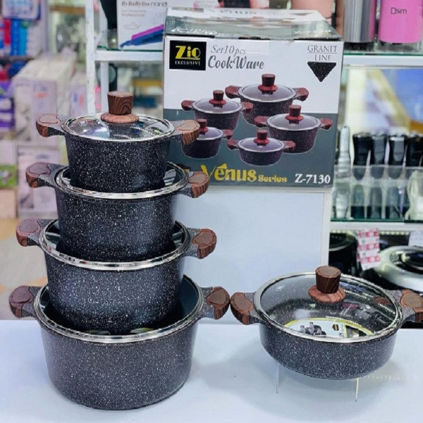 سرویس قابلمه 10 پارچه زیو، یکی از با کیفیت ترین و زیبا ترین سرویس قابلمه های موجود در بازار است. این سرویس چدن-گرانیتی، دارای چهار عدد قابلمه به ابعاد 20،24،28،32 و یک عدد تابه 28 میباشد.دستگیره های این کار باکالیتی و مقاوم به حرارت است. کفه این قابلمه ها اینداکشن و دارای شعله پخش کن است.