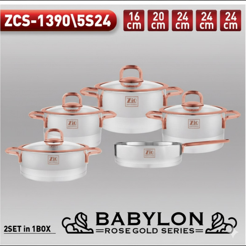 سرویس قابلمه و تابه استیل 9 پارچه بازرگانی زیو مدل 1390 رز گلد