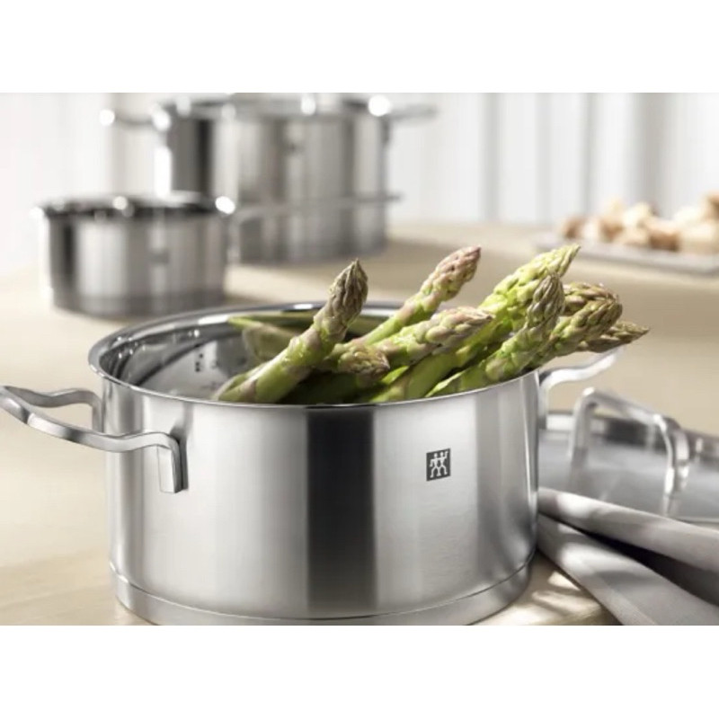 قابلمه دربدار «Moment» با ظرفیت ۲ لیتر، ساخته شده از استیل ضد زنگ، برند زولینگ، یک وسیله همهکاره در آشپزخانه است. این قابلمه با قطر ۱۶ سانتیمتر، برای تهیه تمامی غذاها ایدهآل است. شما میتوانید سبزیجات، برنج یا غذاهای دیگر را به راحتی بپزید. درب استیل این قابلمه، گرم کردن سریع غذاها را فراهم میکند و به شما در صرفهجویی در مصرف آب و انرژی هنگام آشپزی کمک میکند.از دیگر مشخصات این قابلمه، جنس بدنه استیل ضدزنگ 18/10 با درب کاملاً کیپ برای پختوپز مؤثر و حفظ ویتامینها و کف سهلایه SIGMA Classic (۱۸/۱۰ استیل داخلی + هسته آلومینیومی + لایه بیرونی استیل مغناطیسی) با انتقال یکنواخت حرارت و دستههای ارگونومیک و نسوز با روکش مات استیل و خط داخلی (measuring scale) جهت اندازهگیری دقیق حجم مایعات و لبههای پهن برای ریختن تمیز و بدون چکیدن که مناسب برای تمامی منابع حرارتی از جمله اجاق القایی (induction) می باشد.