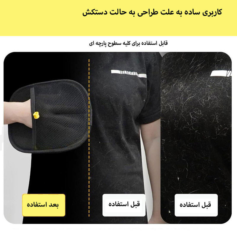 این دستکش با طراحی هوشمندانه، به شما امکان میدهد به راحتی و تنها با حرکت دادن دست، همهجا را تمیز کنید و حیوان خانگی خود را شانه بزنید.