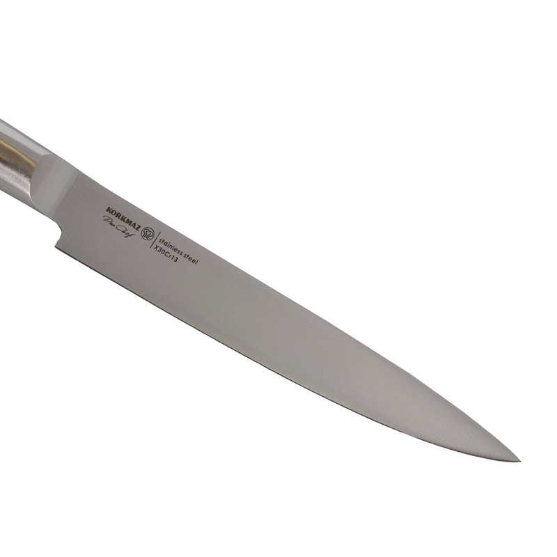 چاقو ها انواع بسیار مختلفی دارند و هر کاری با چاقو مخصوص به خود انجام میگیرد. انتخاب و خرید یک چاقو مناسب ، باعث لذت بردن از آشپزی میشود چرا که اگر چاقو خریداری شده کیفیت مناسبی نداشته باشد، علاوه بر اینکه کار آشپزی سخت میشود و موجب از بین رفتن مواد غذایی میشود. کارد آشپزخانه کرکماز از جنسل استیل 18/10 ساخته شده است و باکیفیت می باشد.این محصول ساخت کشور ترکیه است.