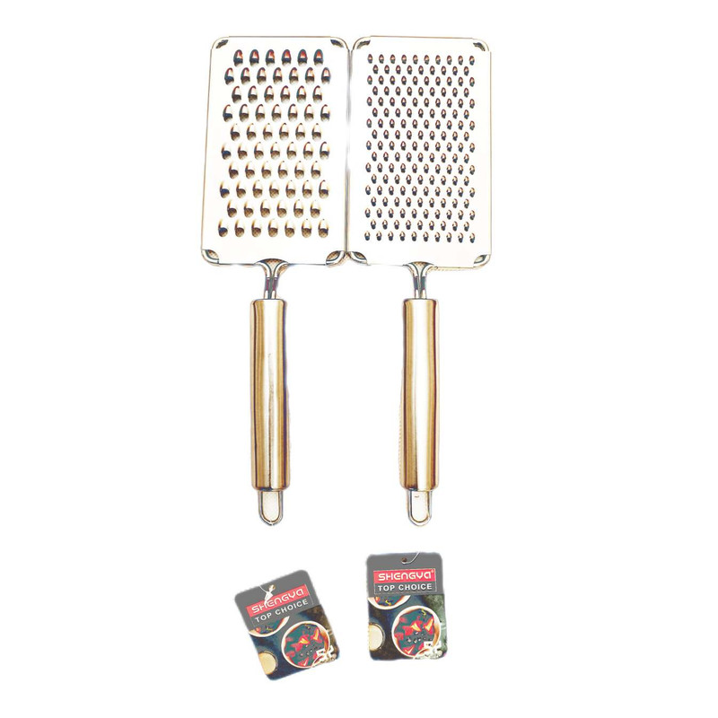 یکی از وسایل خردهریز آشپزخانه که از ملزومات آن نیز محسوب میشود رنده است. رندهها همیشه جزو ابزارهای پرکاربرد در تهیهی غذاها و سالادهای گوناگون محسوب میشدهاند، این وسیلهی ساده نقش بسیار مهمی در سرعت کارها در آشپزخانه خصوصا هنگام مهمانیها ایفا میکند. در انتخاب رندههای دستی باید دقت بخرج داد اینکه رندهای انتخاب کرد که از جنس مرغوبی باشد و مدت طولانی بدون اینکه کند شود بتوان از آن استفاده کرد. زیبایی نیز در انتخاب رنده باید اعمال شود چون دکوراسیون و چیدمان آشپزخانه نیزبرای کدبانوی منزل پراهمیت است. رنده با جنس تیغهی استیل و ظاهری ساده ولی شیک و چشمگیر انتخابی مناسب در جهت ویژگیهای بیان شده است. جنس استیل آن ضد زنگ بوده و قابل شستشو در ماشین ظرفشویی است.این دو نوع رنده ریز و درشت شنگیا بسیار کاربردی و شیک هست