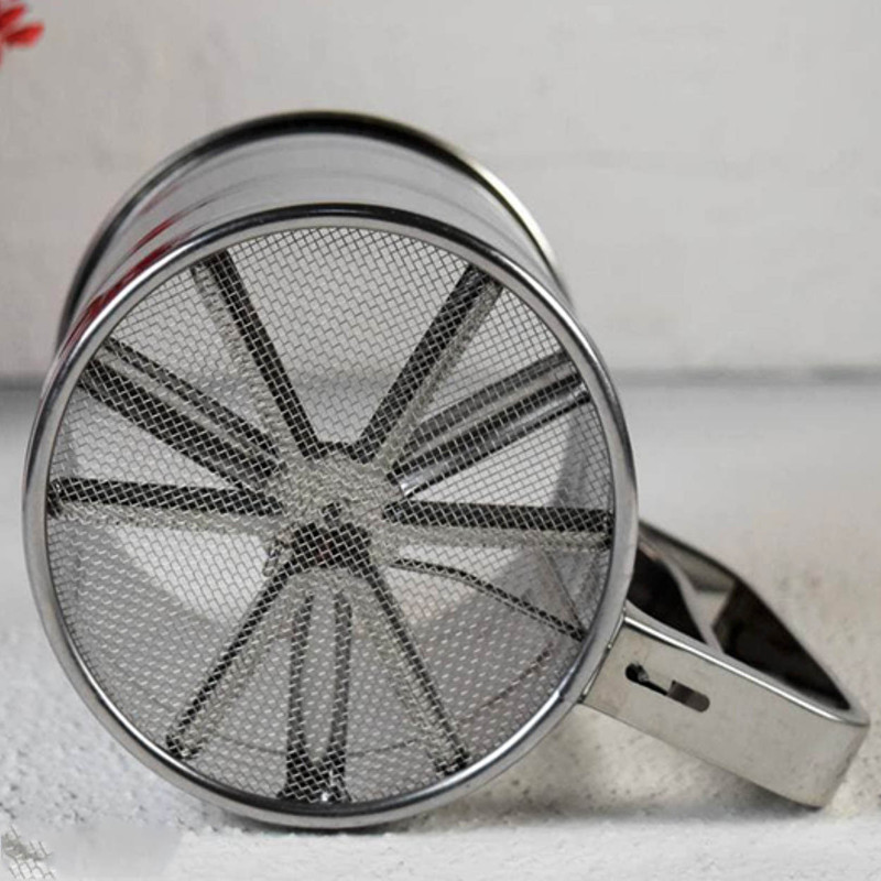 این الک چرخشی جهت الک کردن آرد، پودر کاکائو، بیکینگ پودر و … مناسب بوده و می توان از آن در منزل، کافیشاپ، چایخانه، قنادی و … استفاده نمود.