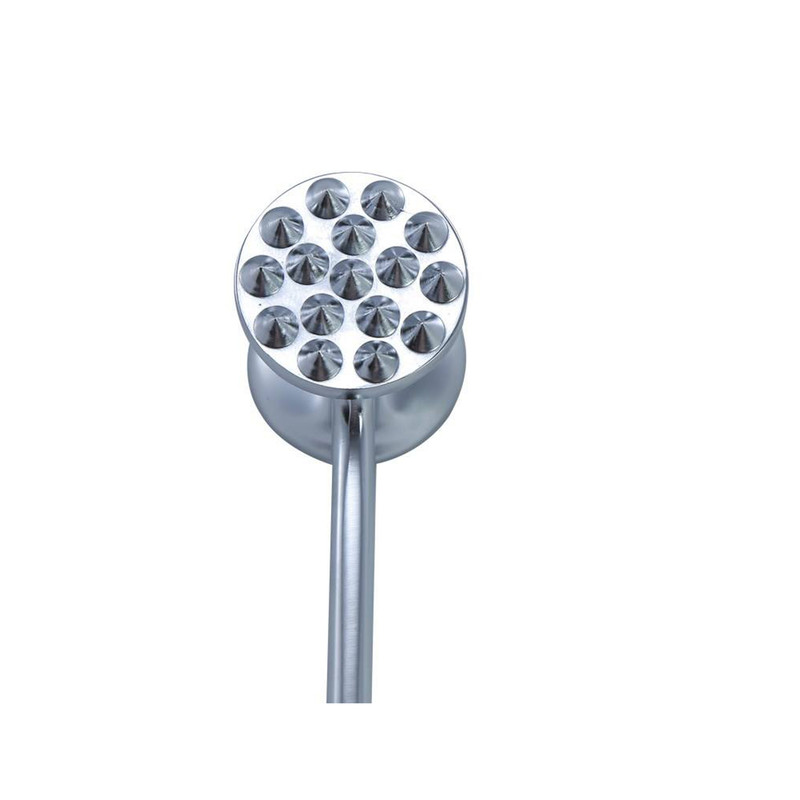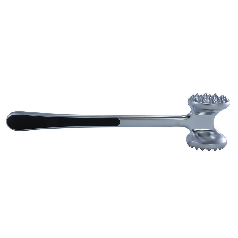 استیک تکه بزرگی از گوشت است که به خوبی کوبیده میشود تا به قطر خوبی برای پخت برسد و بعد در حرارت بالا سرخ میکنیم. برای همین امر به ابزاری برای کوبیدن گوشت نیاز داریم تا بتوانیم استیکی با همان کیفیت رستورانها یا آشپزهای حرفهای تهیه کنیم. این وسیله با برآمدگیهای الماسگونهای که در کفش دارد، باعث میشود بافتهای گوشت از هم باز شود و در نهایت در طبخ مغزپختتر شود.اگر به تصاویر این محصول دوباره نگاه کنید، برجستگیهایی منظمی را در قسمت سر بیفتک مشاهده خواهید کرد. این برجستگیها باعث نرم شدن گوشت میشوند. فقط کافی است با کوبیدن این قسمت روی انواع گوشت، آنها را نرمتر کنید و به روند پختشان سرعت بخشید. نرم شدن گوشت باعث پخت بهتر و درنتیجه خوشطعم شدن آن خواهد شد؛ بنابراین با داشتن چنین وسیلهی کاربردی در آشپزخانه، غذاهای متنوع و خوشمزه برای خود و خانوادهتان طبخ خواهید کرد. این مدل برای نرم کردن انواع گوشت مانند گوشت گاو، گوسفند و حتی مرغ قابلاستفاده است.این محصول از جنس فلز میباشد که کاملا بهداشتی بوده و نمیشکند.