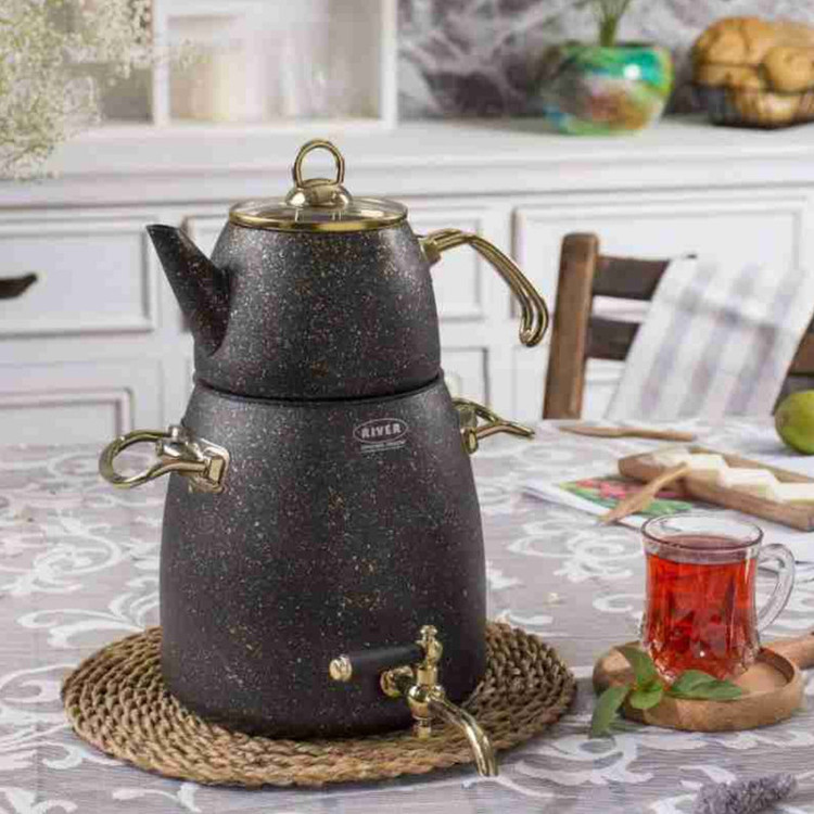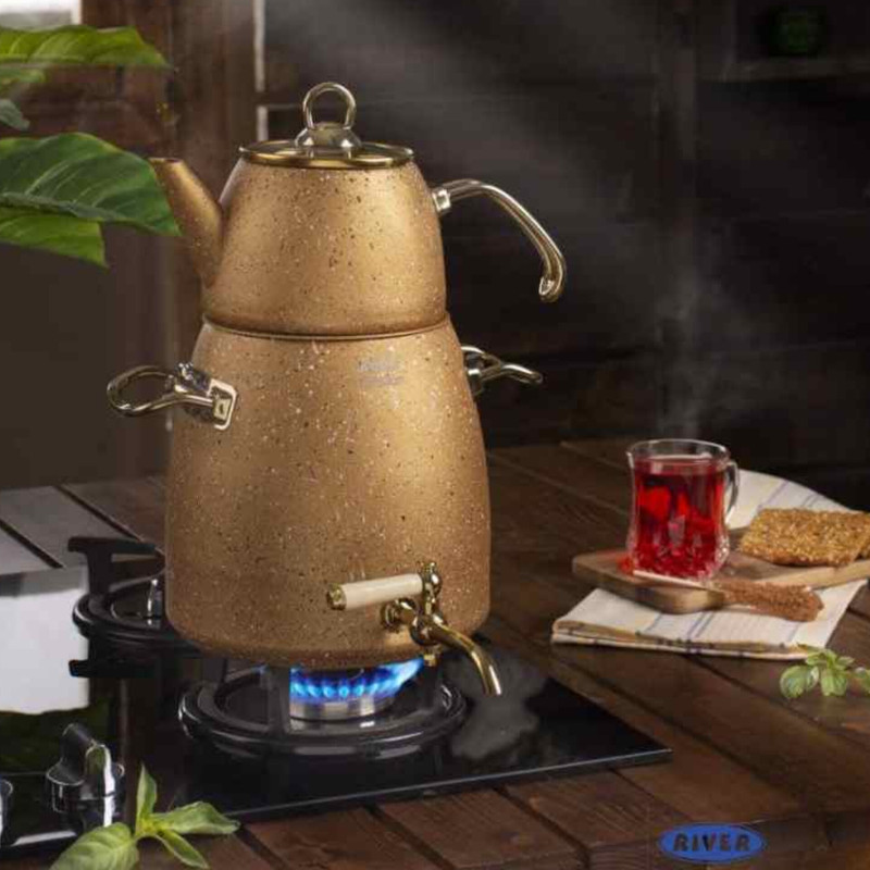 ست کتری و قوری ریور مدل شیردار کد TP5831 گنجایش کتری 4.5 لیتر گنجایش قوری 1.2 لیتر