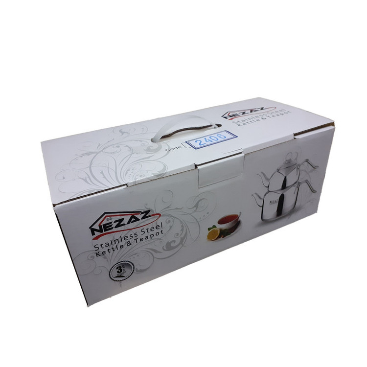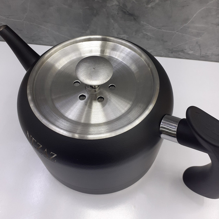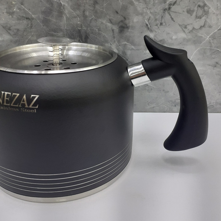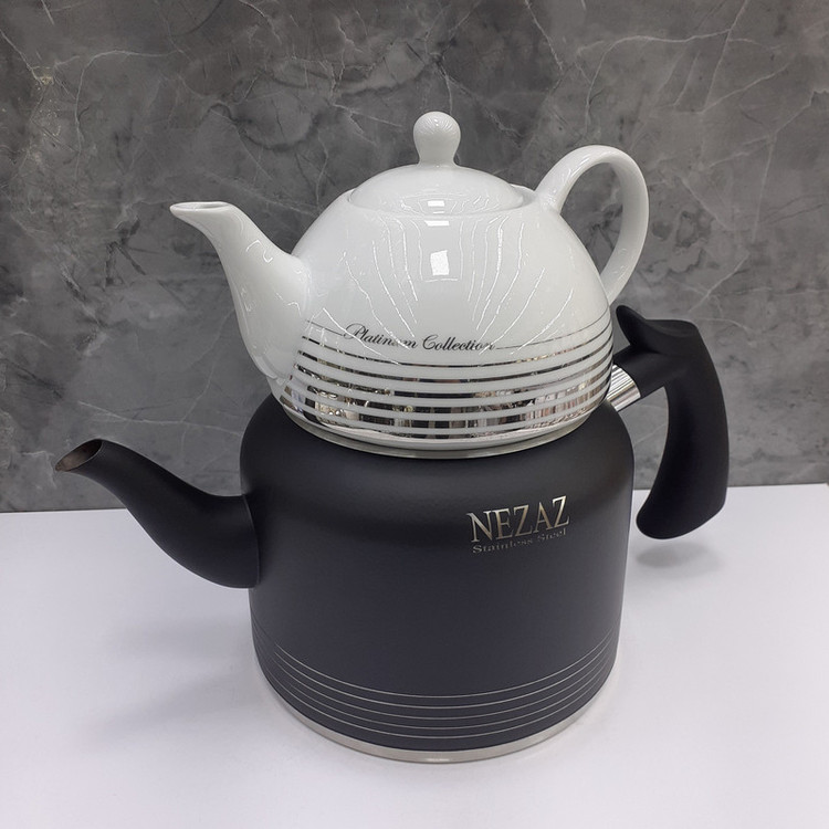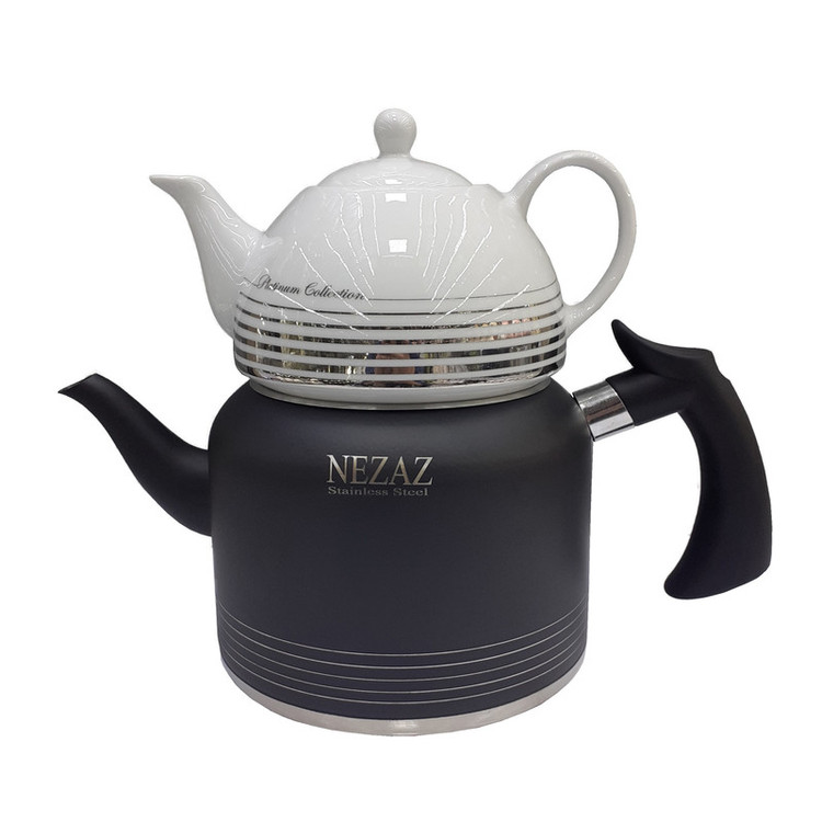 نزاز نام یکی از برند های تولیدکننده ایرانی کتری و قوری به شمار می رود که برای تولید محصولات خود از استیل 18/8 با نیکل 304 استفاده می کند که این متریال دربرابر زنگ زدگی و حرارت مقاوم است. این کتری ها دارای قابلیت جذب رسوبات و املاح هستند و به همین علت استفاده از آن ها به جلوگیری از ابتلا به بیماری های سنگ کلیه کمک شایانی می کند. کف این کتری از چدن نسبتا ضخیمی می باشد که علاوه بر توزیع یکنواخت حرارت در کفه، حرارت را به خود جذب کرده و سبب می شود پس از خاموش کردن شعله، آب داخل کتری مدت بیشتری داغ بماند. همچنین دسته باکالیت درنظر گرفته شده برای کتری از مواد اولیه باکیفیتی تولید شده است تا موقع استفاده از آن، دست را نسوزاند.