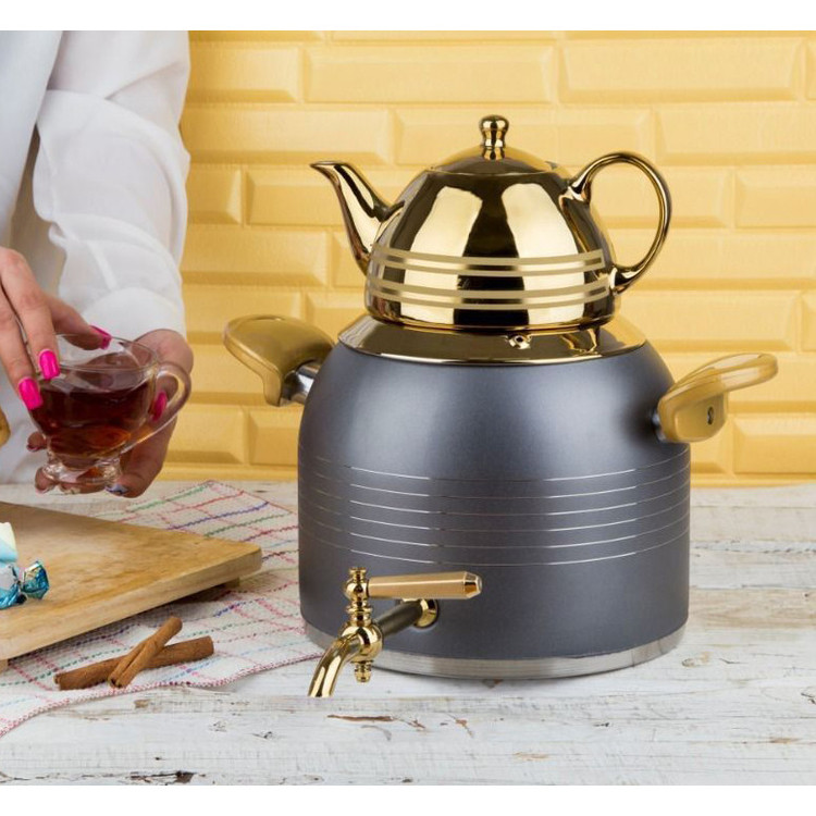 ست کتری و قوری نزاز کد 3029 :نزاز نام یکی از برند های تولیدکننده کتری و قوری به شمار می رود که برای تولید این محصولات از استیل ضد زنگ استفاده می کند. این برند مطرح ایرانی از ورق استیل 18:8 با نیکل 304 برای تولید محصولات خود استفاده می کند. بدنه کتری های این برند معمولاً یک تکه هستند و این امر موجب می شود که کتری های این برند چنانچه بدون آب روی شعله قرار بگیرند نسوزند و سوراخ نشوند. لازم به ذکر است که کتری های خارجی به علت دو تکه بودن بدنشان امکان سوراخ شدنشان بسیار بالا است. این کتری ها دارای قابلیت جذب رسوبات و املاح هستند و به همین خاطر مصرف آن ها منجر به جلوگیری از ابتلا به بیماری های سنگ کلیه و مثانه می شود.