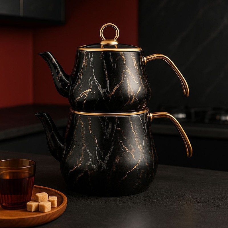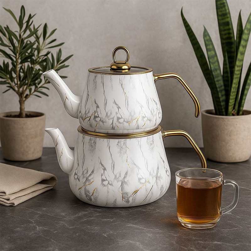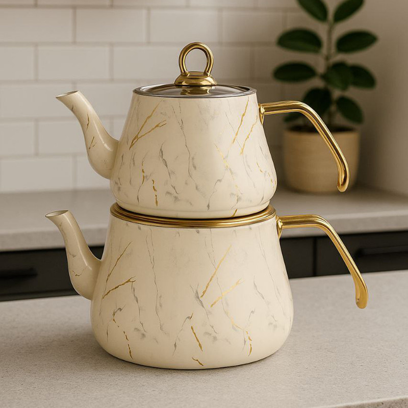 کتری قوری طرح ماربل سوما برای دمآوری خوشعطر و سرو حرفهای طراحی شده است. با کتری 2.5 لیتر و قوری 1.5 لیتر، پاسخگوی نیاز روزانهٔ خانواده و پذیرایی از مهمانهاست. وجود دربِ مستقل کتری باعث میشود حتی هنگام جدا کردن قوری، آب داخل کتری بهصورت بهداشتی و سریع بجوشد.
