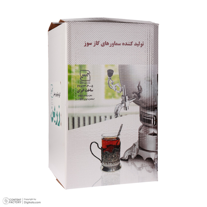 سماور گازی زرین حاصل تلاش مهندسان و متخصصان ایرانی شرکت زرین با 50 سال سابقه تولید سماور گازی در صنعت می باشد که به هموطنان عزیز توصیه میشود به نکات زیر توجه کنند: چرا از سماور گازی از جنس فلز برنج استفاده کنیم؟ فلز برنج ترکیبی از مس و روی است و با توجه به ویژگیها و مزایایی که دارد در سلامتی و زندگی روزمره نیز بسیار ارزشمند است. استفاده از سماور برقی برنجی برای بدن انسان بسیار مفید است: تامین مس مورد نیاز بدن و کمک به کمبود آن بهبود فعالیت سیستم گوارشی بدن و تقویت آن نگهداری کامل از یون های بدن ایجاد احساس آرامش عصبی در بدن. نگهداری کامل از مواد مغذی و سالم بدن . کاهش قابل توجه خارش ها و حساسیت های پوستی و مراقبت از سلامت پوست در برابر عوامل حساسیت زا جلوگیری از کم خونی با افزایش مقدار هموگلوبین خون . فلز برنج خاصیت ضد میکروبی و ضدباکتریایی دارد. موجب عملکرد صحیح سلولهای مرکز فرمان در مغز میشود. استفاده از سماور برقی برنجی برای درست کردن چای موجب میشود تا بسیاری از بیماریهای گوارشی و پوستی ناشی از کمبود روی و آهن در بدن، درمان شود. کمبود روی و مس باعث ایجاد بیماری های فراوانی میشود،بهترین راه برای حل این مشکل استفاده از سماور گازی برنجی است.پزشکان سنتی به استفاده از ظروف برنجی برای پخت و پز بسیار تاکید کردهاند. چرا نباید از سماور ها و چای ساز های شیشه ای و پلاستیکی استفاده کنیم؟ متاسفانه در حال حاضر سماور های جدید که بیشتر آنها تولید شده در خارج از کشور می باشند هیچکدام از خواص فلز برنج را ندارند و برخلاف ظاهر زیبا و فریبنده آنها ،آب جوشیده شده به همراه املاح مضر دیگر را به طور کامل از خود خارج میکنند میدانید که پیشگیری مهمتر از درمان است. یکی از راههای پیشگیری از بروز بیماریها، داشتن تغذیۀ سالم و مقوی است. اکنون سماور گازی زرین مدل نگین ساخت ایران با کیفیت بالاتر و قیمت بسیار مناسبتر در اختیار شماست: سماور گازی زرین با ظرفیت ۱۲ لیتر ساخته شده از ورق برنجی B70-0/8 مجهز به پلیمر از جنس باکالیت (مقاوم در برابر حرارت) است. این سماور دارای ایمنی بسیار بالا است. سماور گازی زرین مدل نگین در ظرفیت ۱۲ لیتری تولید شرکت زرین با علامت استاندارد ملی ایران و دارای ایمنی بالا می باشد این سماور دارای ترموکوپل ایمنی جهت خاموش کردن سماور در شرایط اضطراری می باشد