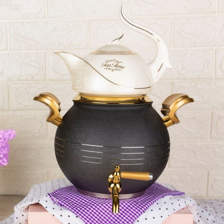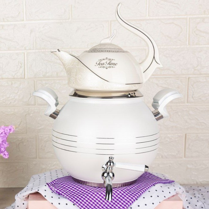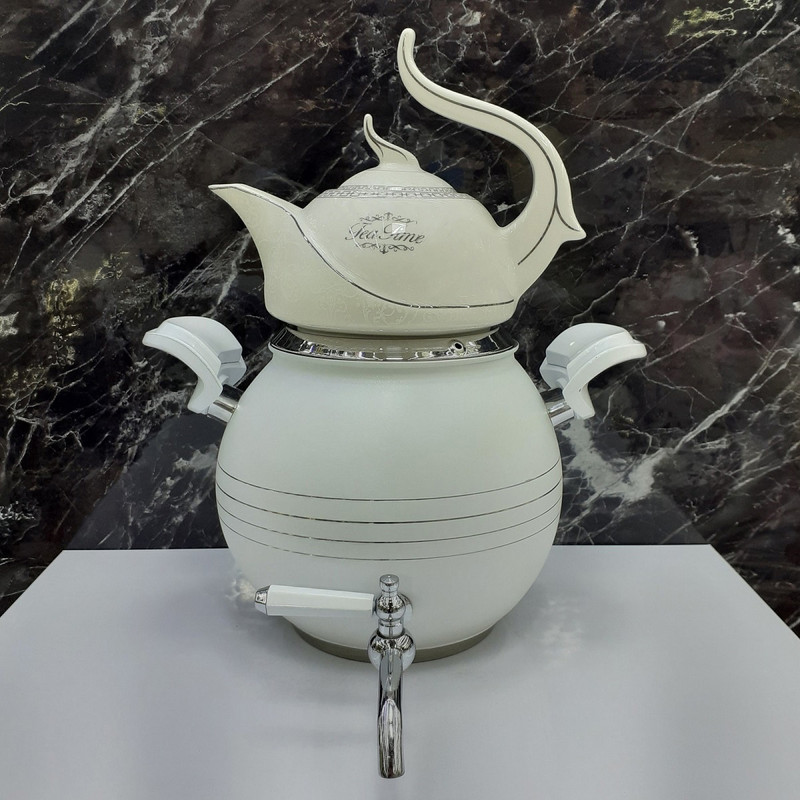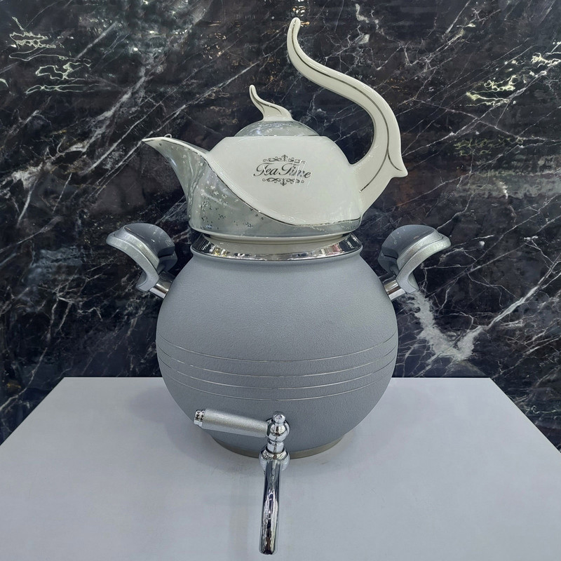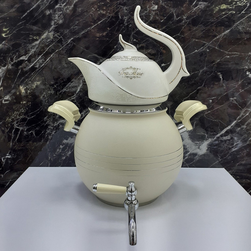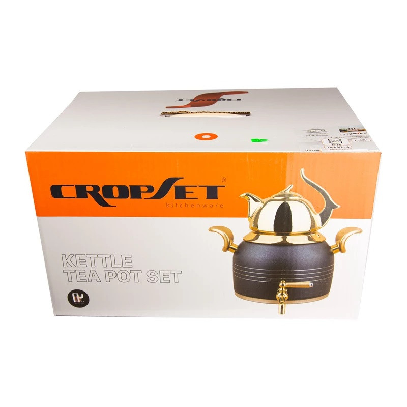 مجموعه کروپ ست این بار برای تامین سلایق مشتریانش دست به ابتکاری جدید زده و کتری های استیل تولیدی خود را در رنگ های متنوعی به بازار عرضه کرده است تا در راستای مشتری مداری و رقابت با دیگر محصولات داخلی و خارجی همچنان یک گام از همه جلوتر باشد. کتری استیل رنگی کروپ ست ساخته شده از استیل ضد زنگ با گرید 304 و ضخامت بدنه 1 میلیمتری می باشد و با طراحی منحصر بفردی که دارد گزینه ای ایدهآل برای آشپزخانه شماست. از مزیت های این محصول دارا بودن قوری بر روی کتری بدلیل طراحی هوشمندانه درب کتری است. همچنین با تعبیه سوپاپ بخار بر روی درب کتری از هدر رفت بخار آب جلوگیری کرده که باعث افزایش بهرهوری انتقال حرارت به قوری می شود. این محصول دارای دستههایی از جنس باکالیت مقاوم به حرارت است. جنس قوری این سرویس، چینی باکیفیت است که طعم چای دلنشینی را برای شما به ارمغان خواهد آورد. از ویژگی های دیگر این محصول می توان به ست بودن رنگ کتری و قوری آن اشاره کرد که می تواند نقش بسزایی در زیبایی نمای آشپزخانه شما داشته باشد. برای انتخاب درست فقط کافیست حضور این کالا را در آشپزخانه خود تجسم کنید. و اما ویژگی بارز کتری های کروپ ست استیل 304 و ضخامت 1 میلمتری آن می باشد که باعث شده مجموعه کروپ ست محصولات رو گازی خود را برای مصرف کننده تا یک سال تضمین کند و این یک سورپرایز به حساب می آید. این حس خوب را میهمان «کروپ ست» باشید.